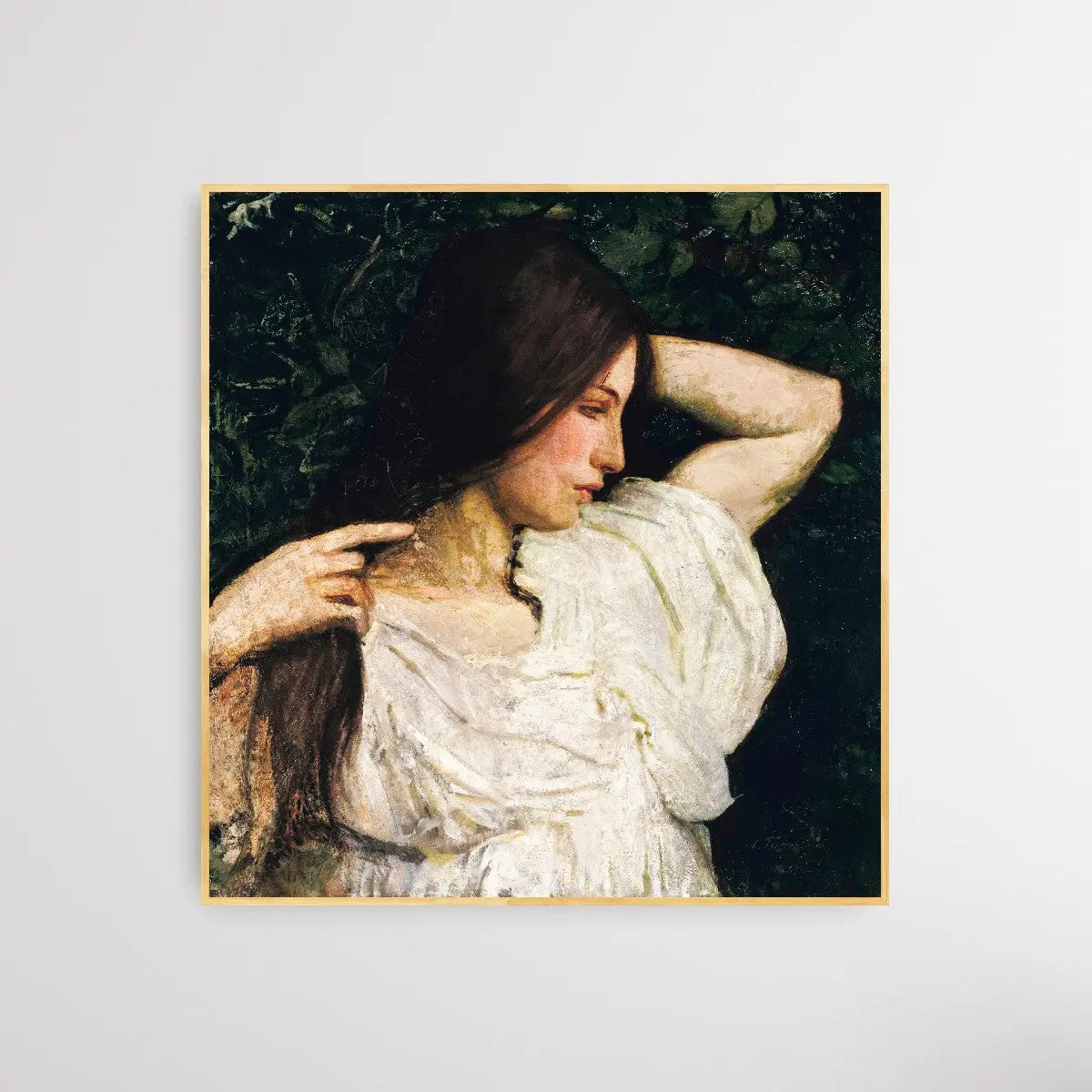 Girl Arranging Her Hair (1918–1919) painting in high resolution by Abbott Handerson Thayer. Original from the Smithsonian Institution.