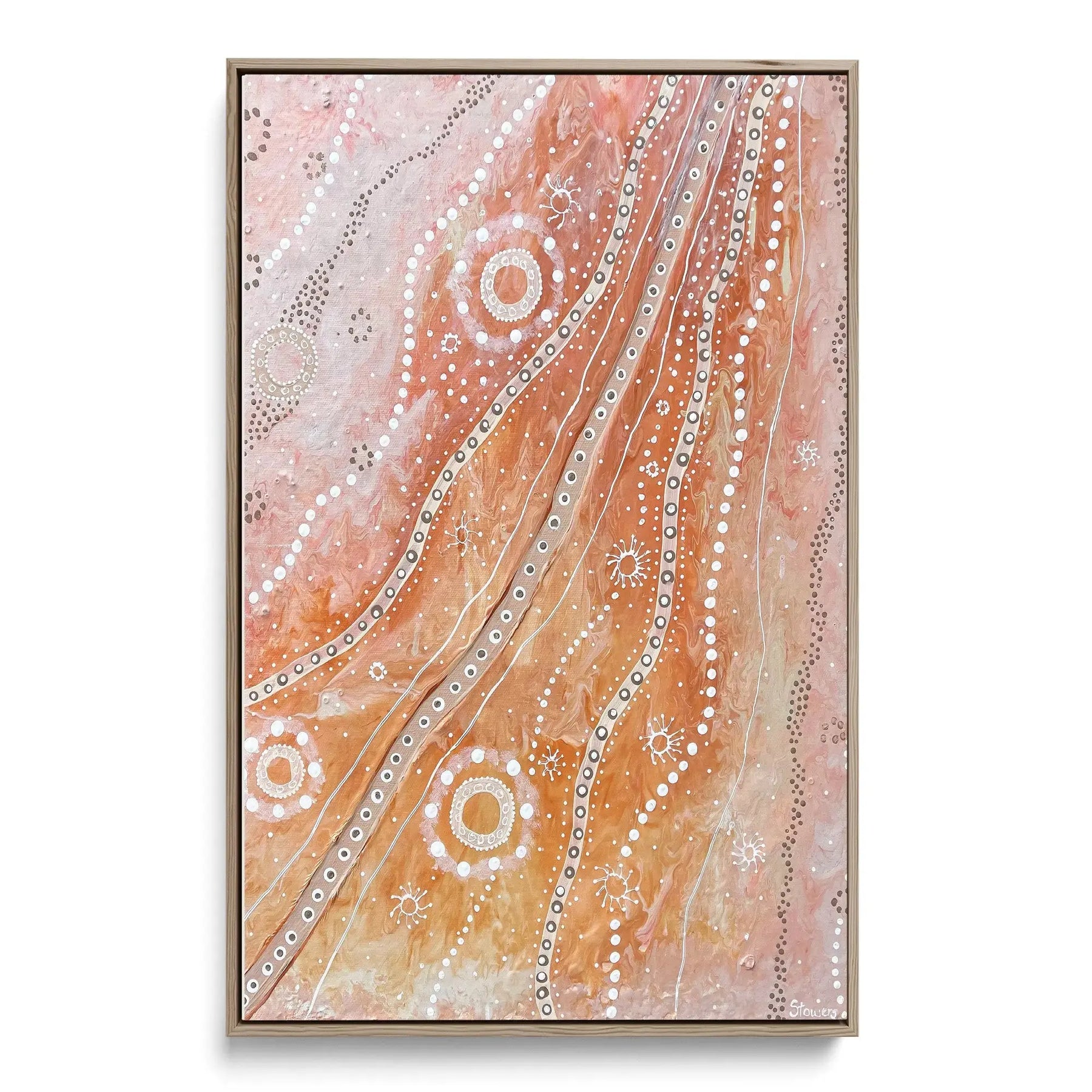 This stunning artwork is a print of the original piece Land Sky by Queensland Wiradjuri Woman Holly Stowers.