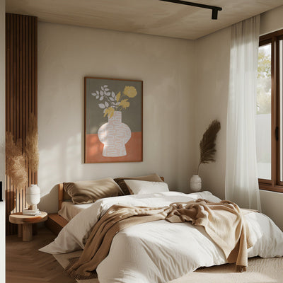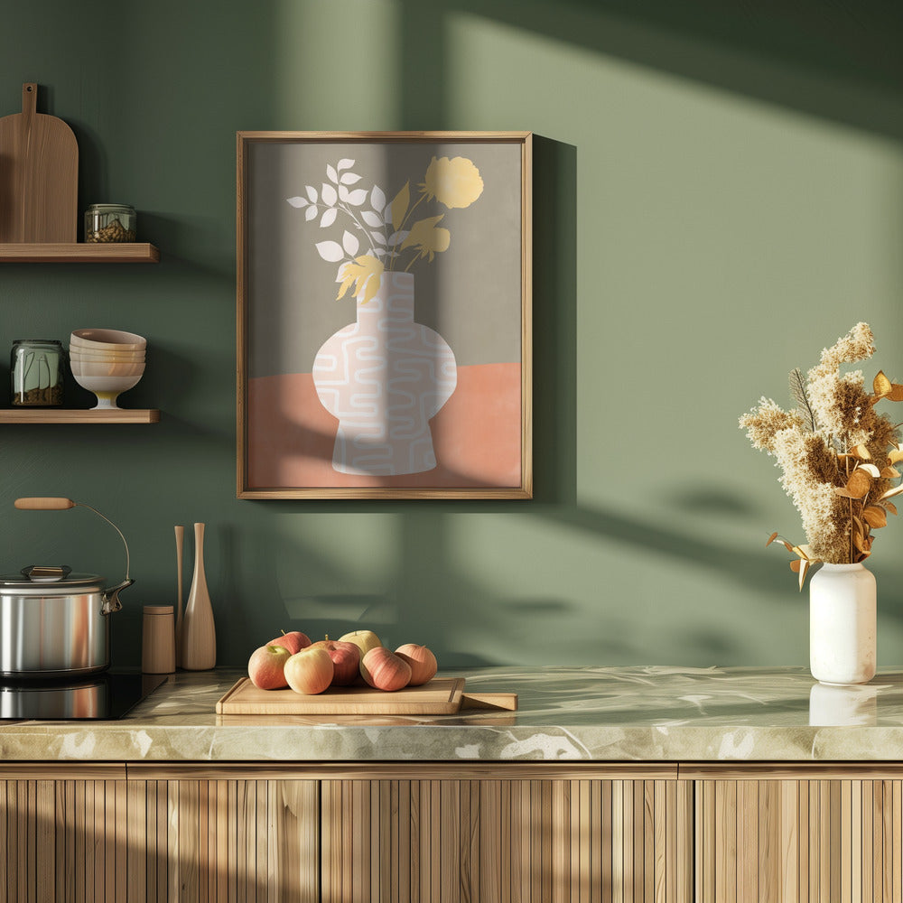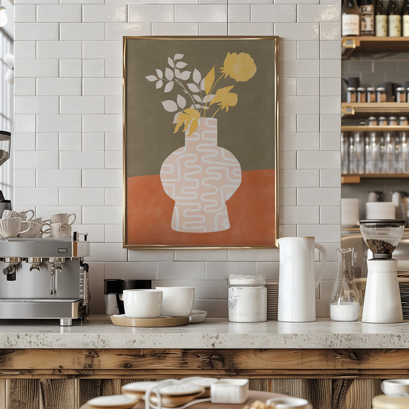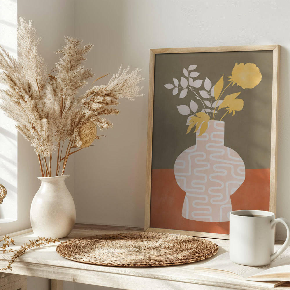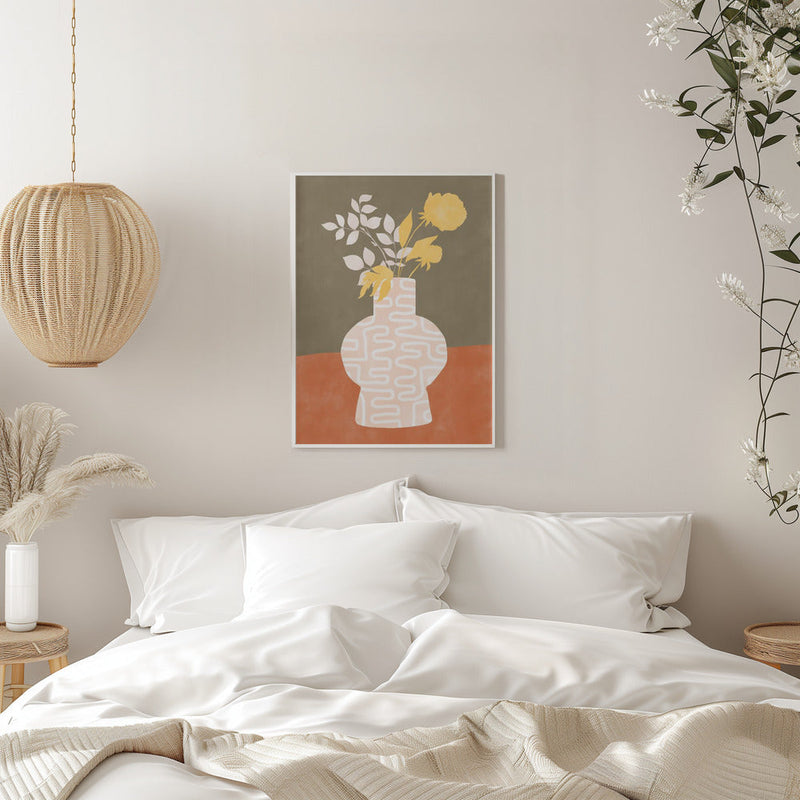 Explore our many print options for Stylized Vase With White Patterns by artist Elena Ristova.