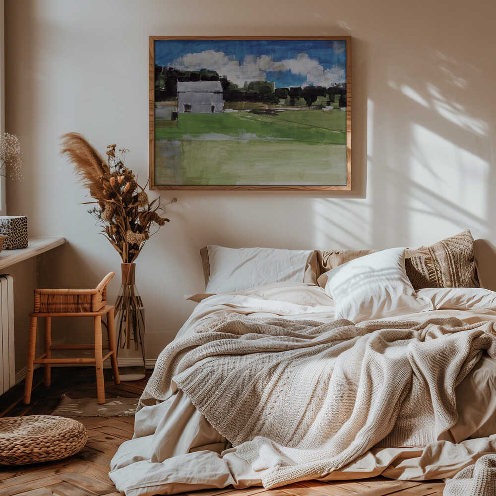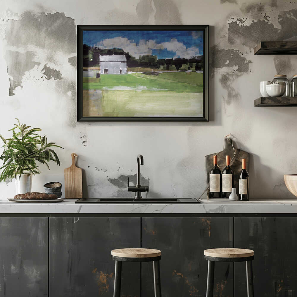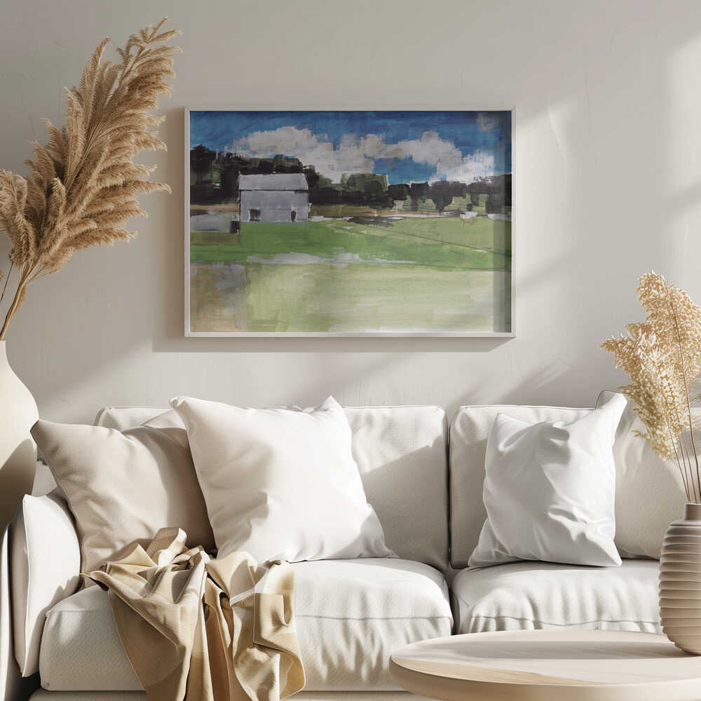 Country Barn Landscape 1 - Stretched Canvas, Poster or Fine Art Print