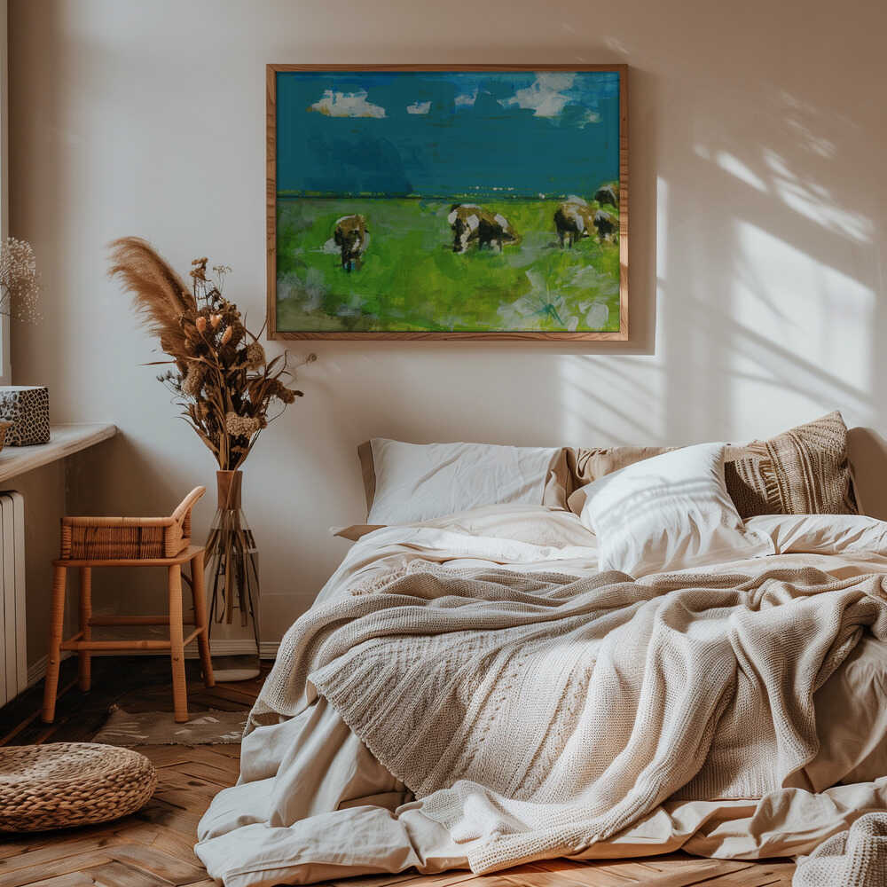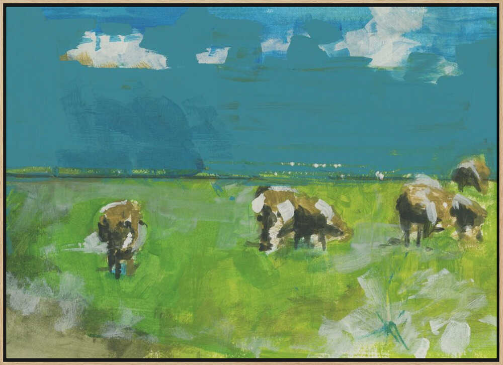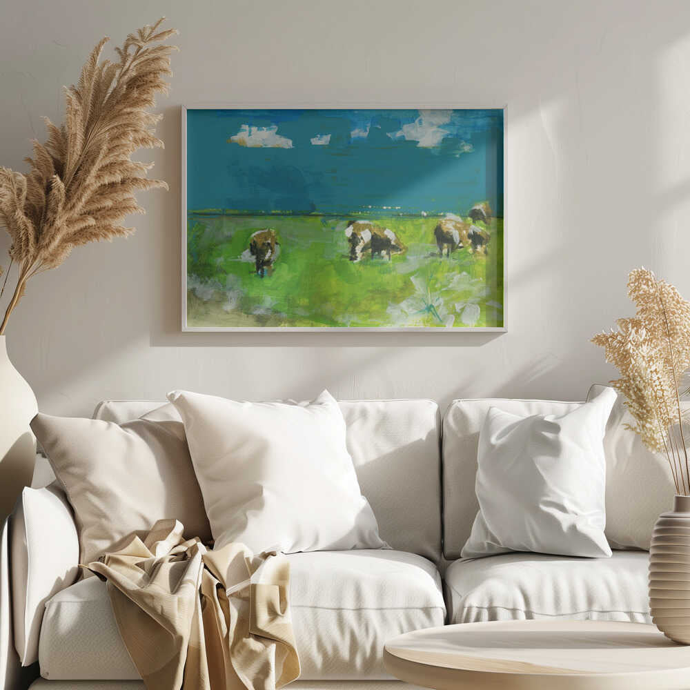 Cows In Landscape Print No 1 - Stretched Canvas, Poster or Fine Art Print