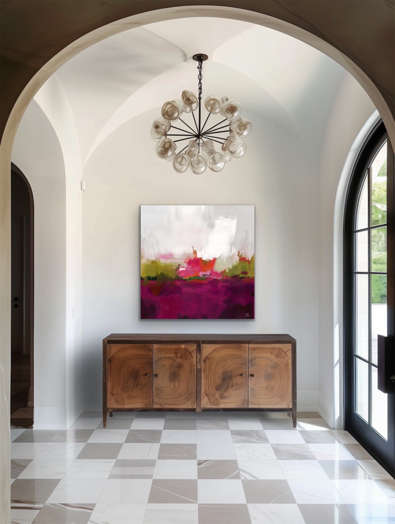 A colourful and vibrant landscape print, inspired by sunset and the hills around Maleny, Queensland.