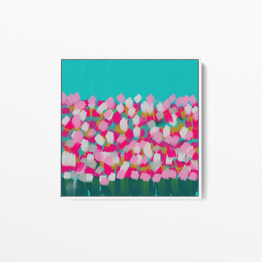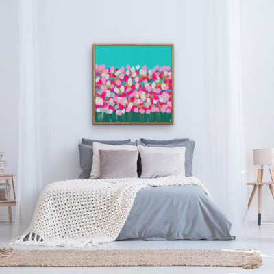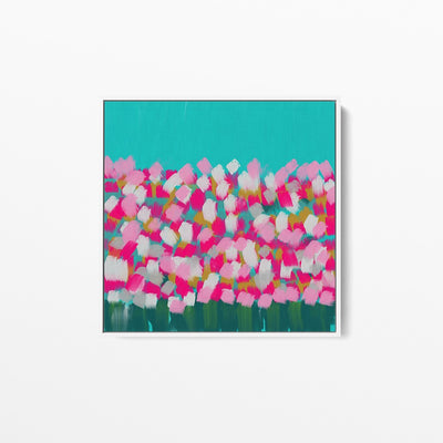 In The Springtime - Original Abstract Artwork Framed Canvas Print Turquoise Pink Floral I Heart Wall Art Australia