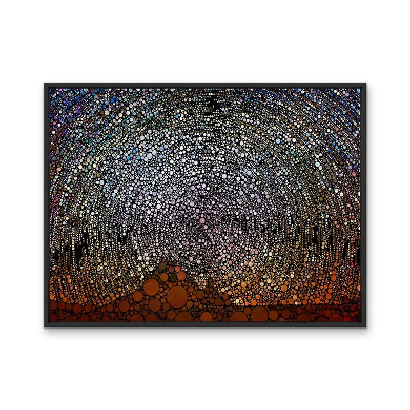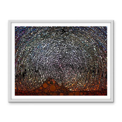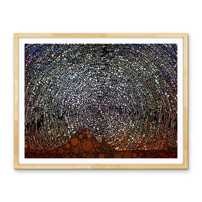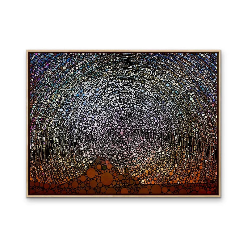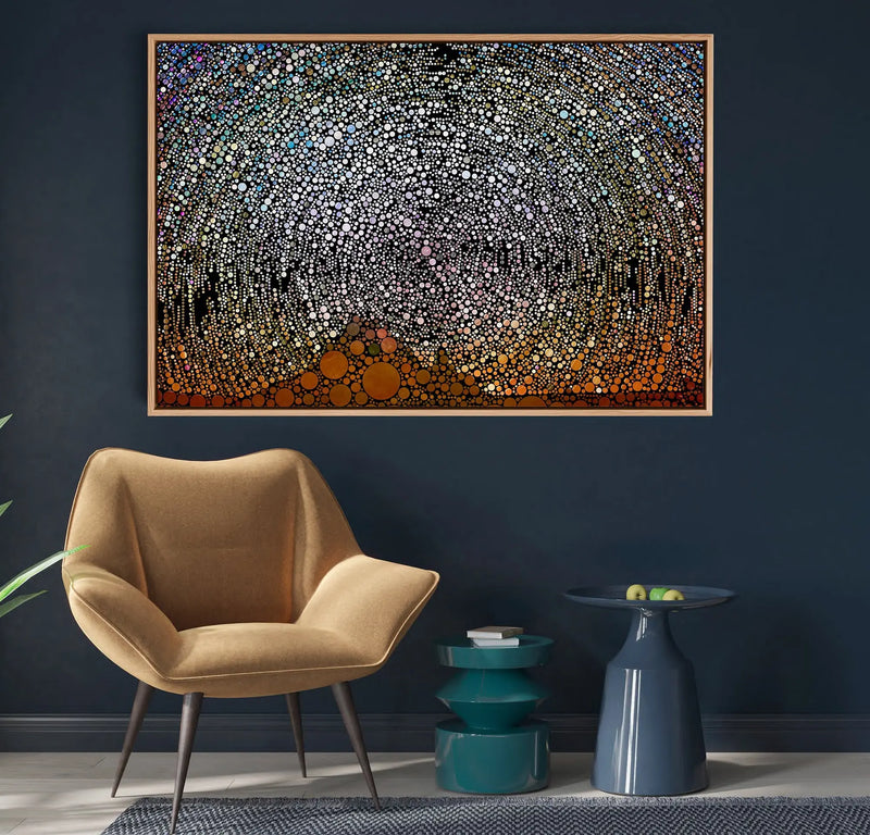 Explore the Outback night sky with this gorgeous spotty piece. Earthy tones from the ground give way to the bright stars of the galaxy beyond.