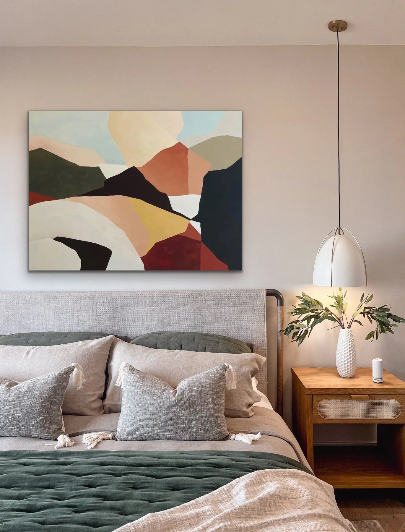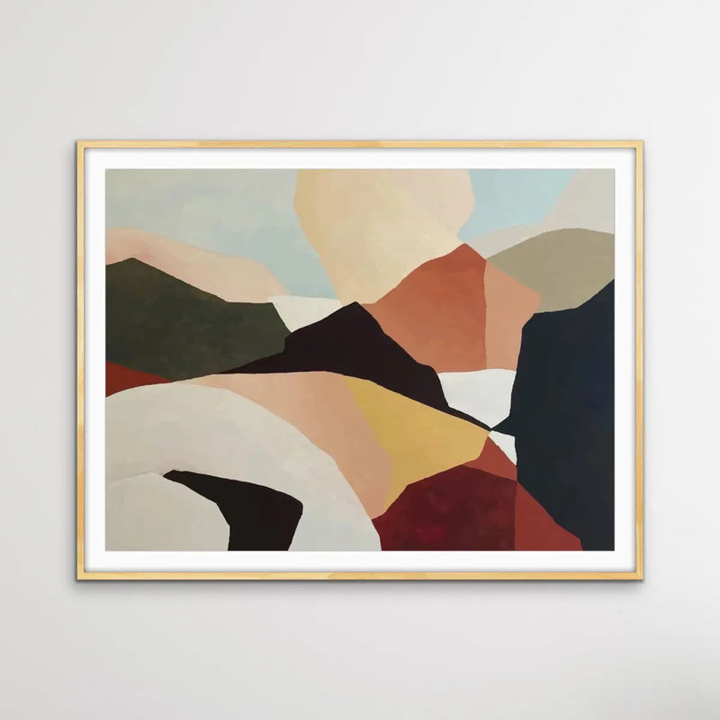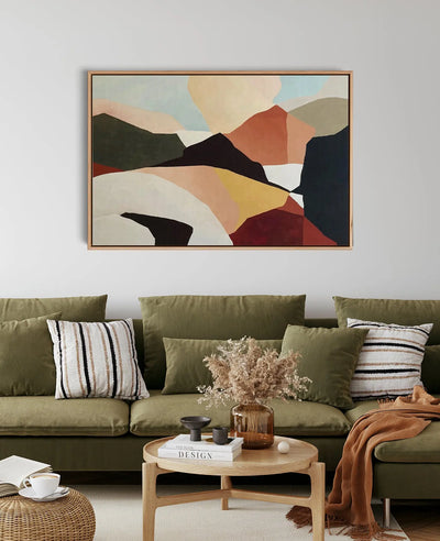 This divine contemporary artwork features a striking colour palette and gorgeous composition of an abstract mountain range. One of our new favourite pieces!