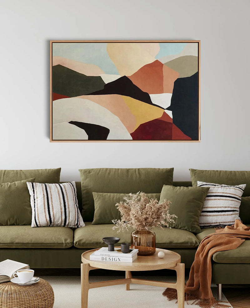 Framed Canvas Print: A ready-to-hang canvas print, hand-stretched around an internal timber frame and finished with timber floating frame in one of three colours - black, white or natural timber. 100% made in Australia to order.