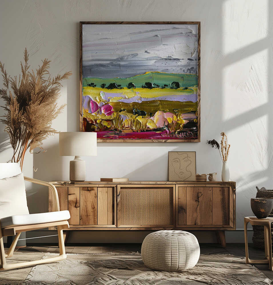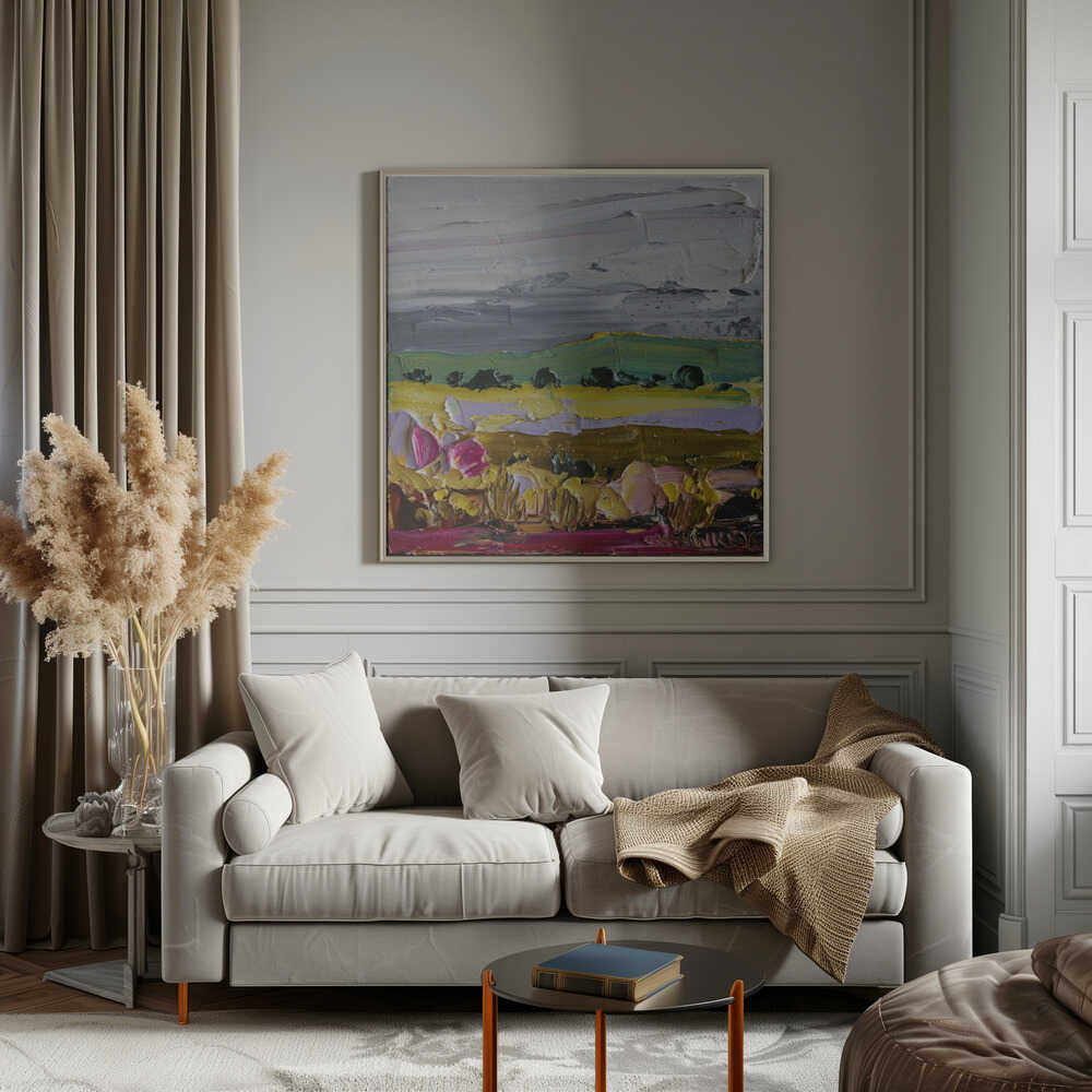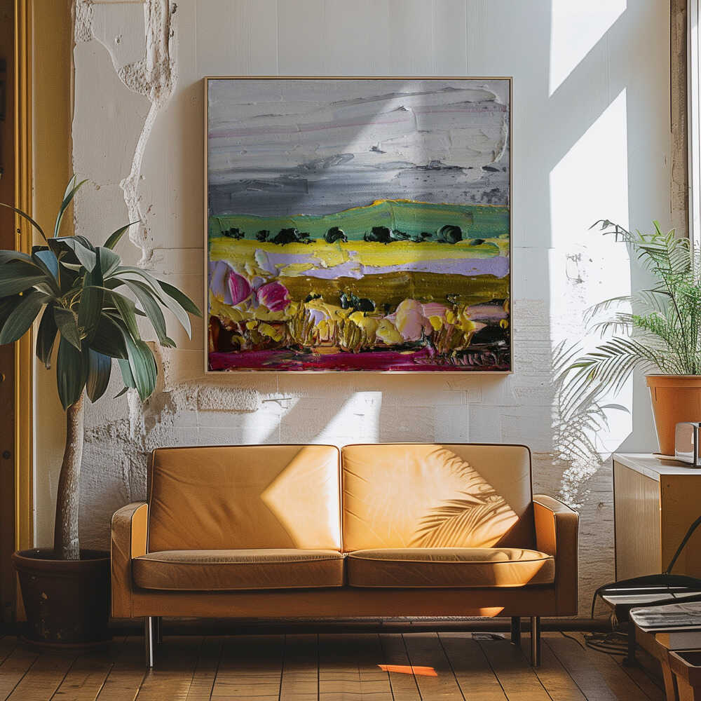 Vibrant Countryside Fields - Square Stretched Canvas, Poster or Fine Art Print