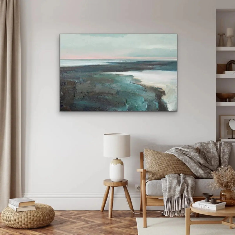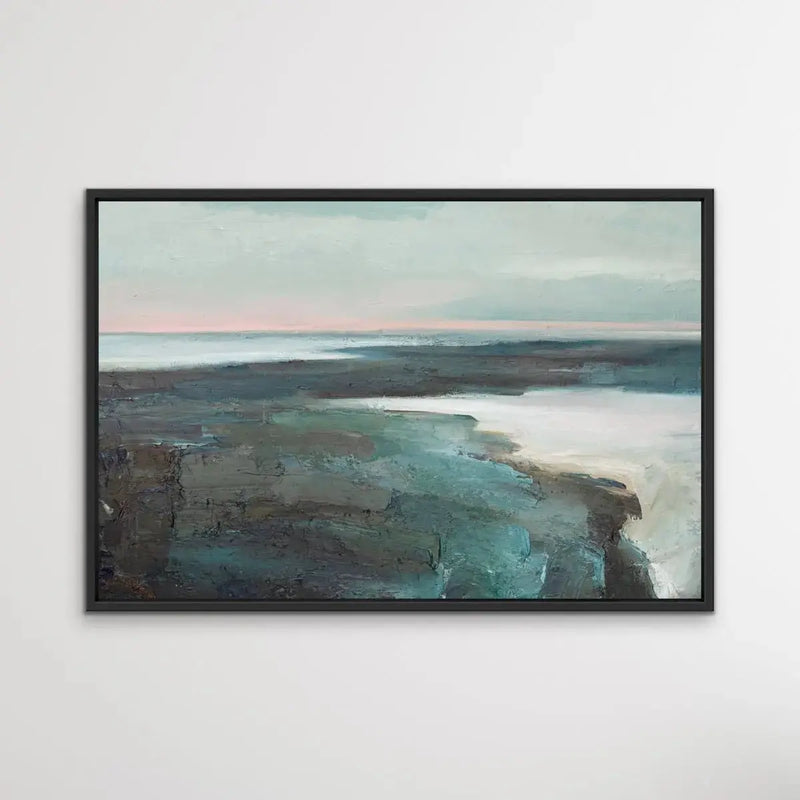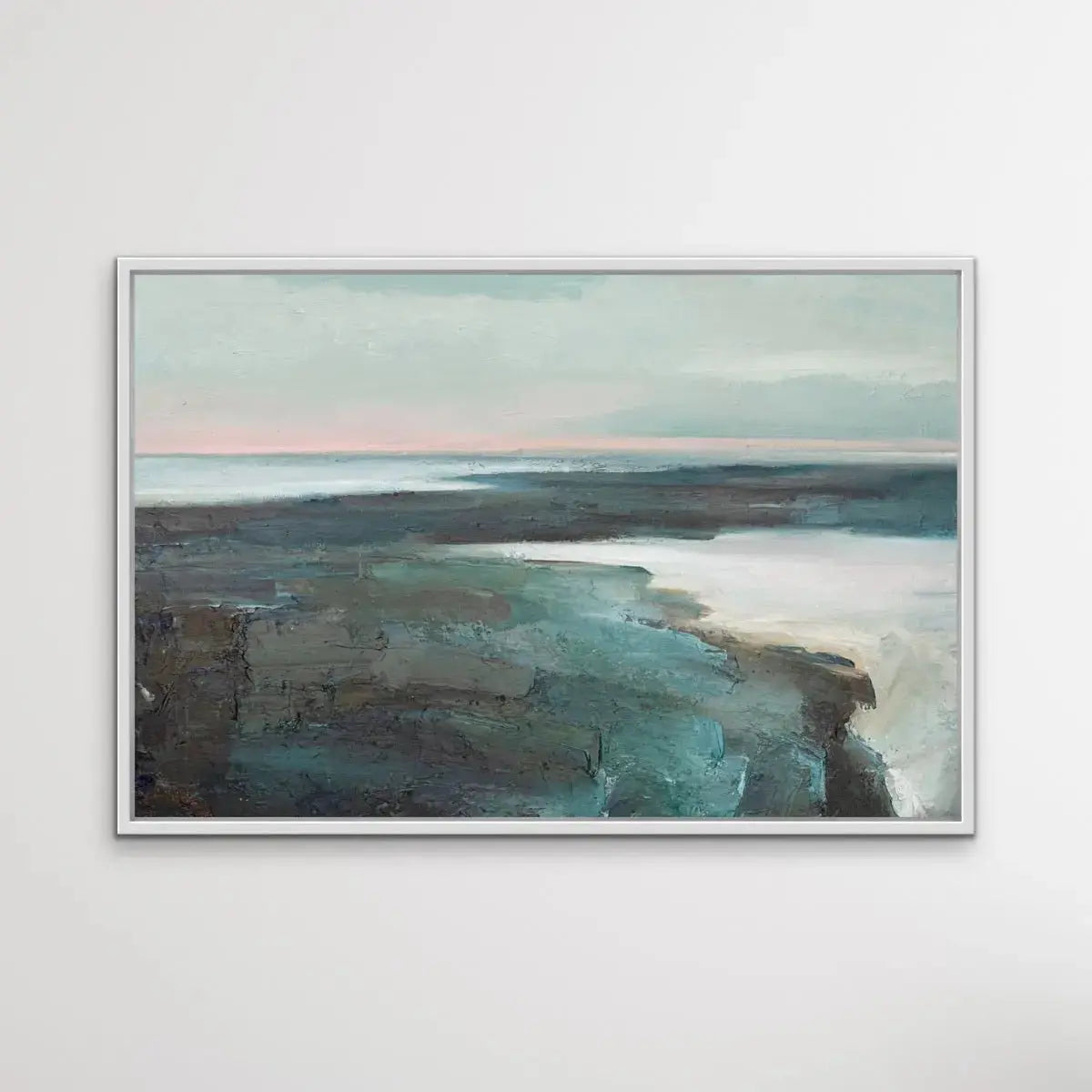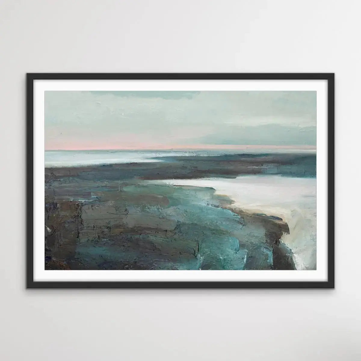 Abyss is an evocative green and pink artwork which conjures up memories of far-away shorelines under rising suns...