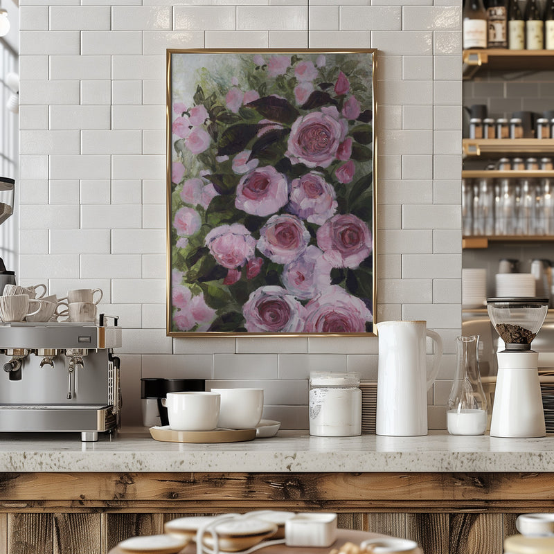 Explore our many print options for Aurorie painterly roses by artist Rosana Laiz Blursbyai.