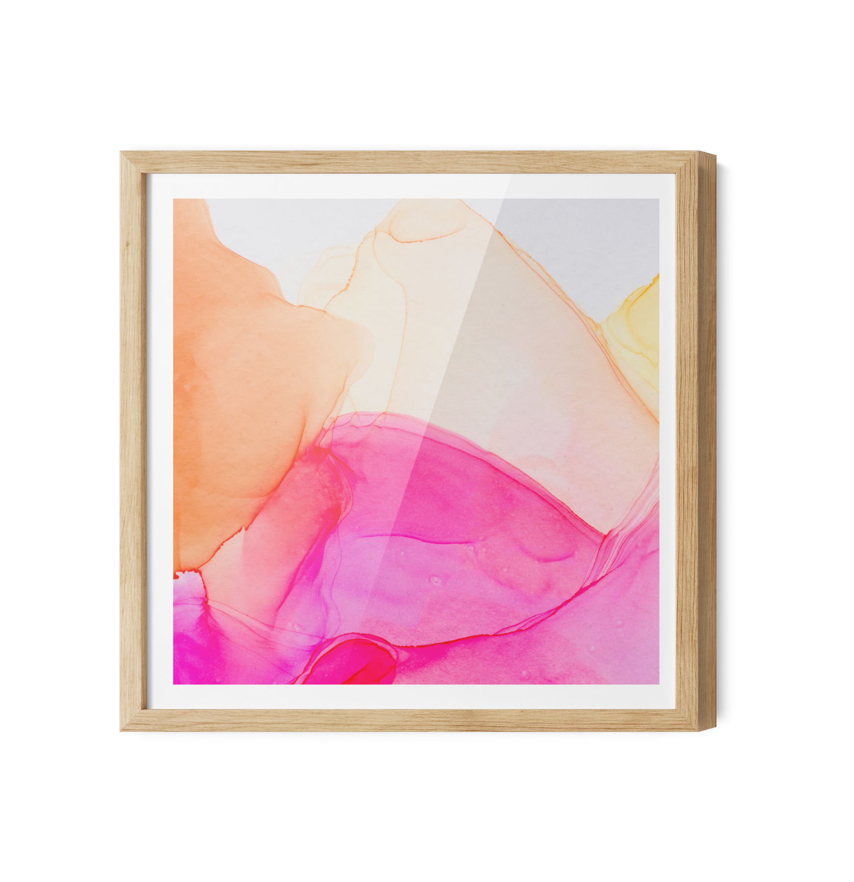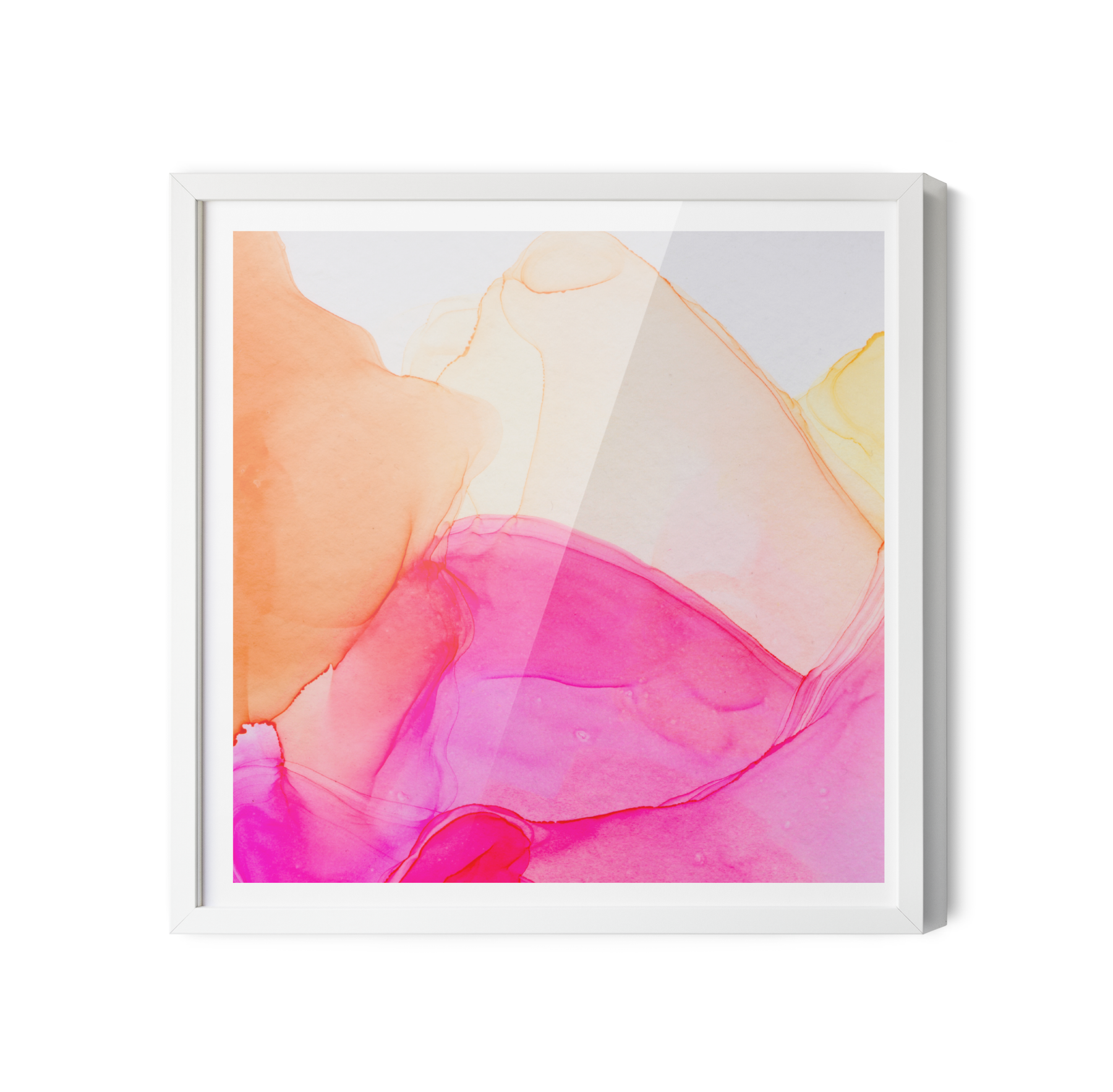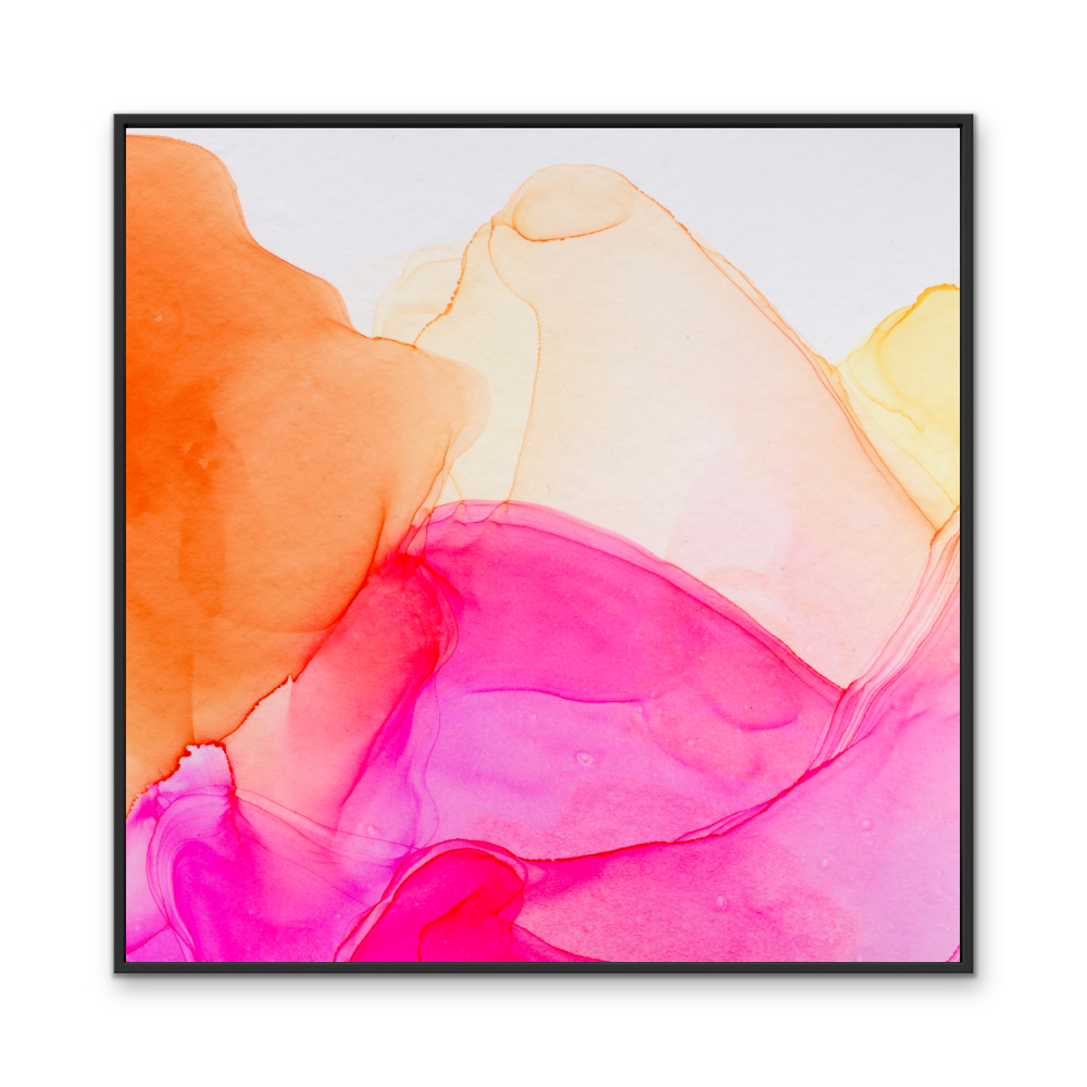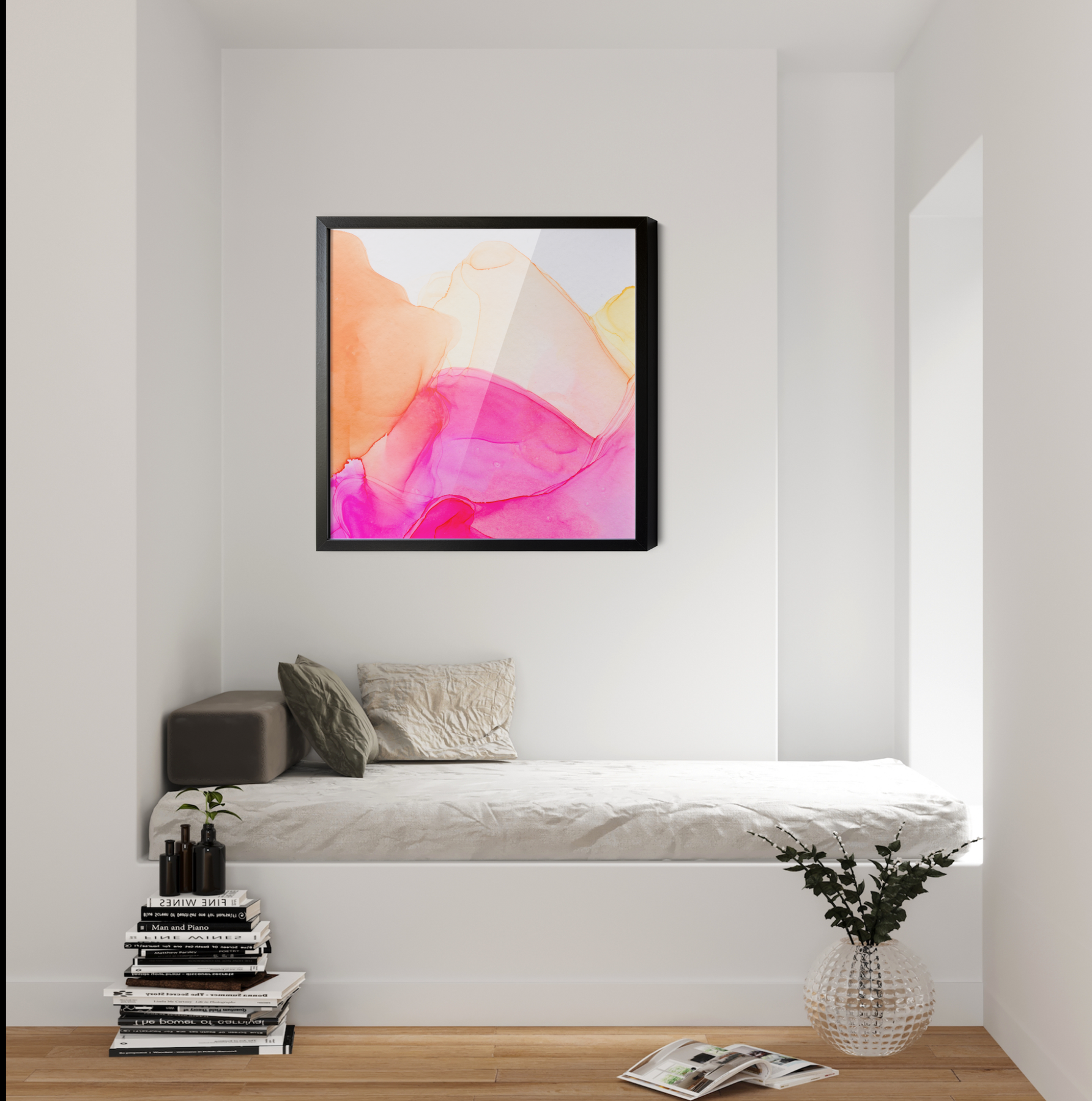 How happy is this gorgeous, bright ink artwork? Perfect for anywhere you want an instant hit of colourful fun in pink and orange, this original piece was created with alcohol inks and is reminiscent of a mountain landscape..