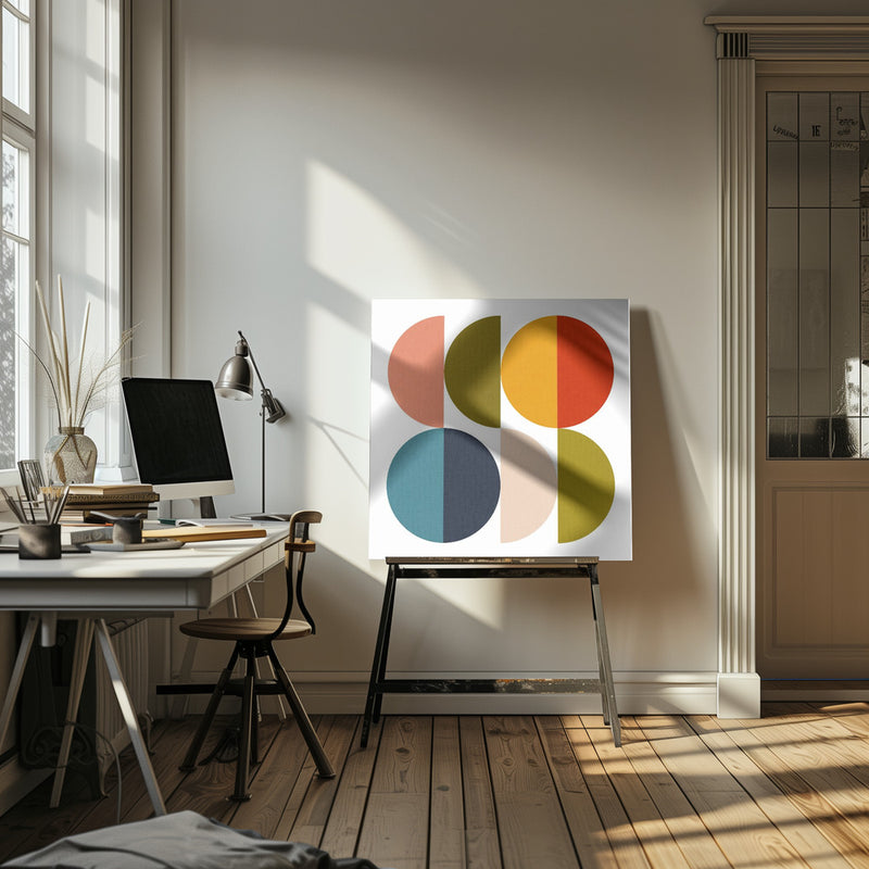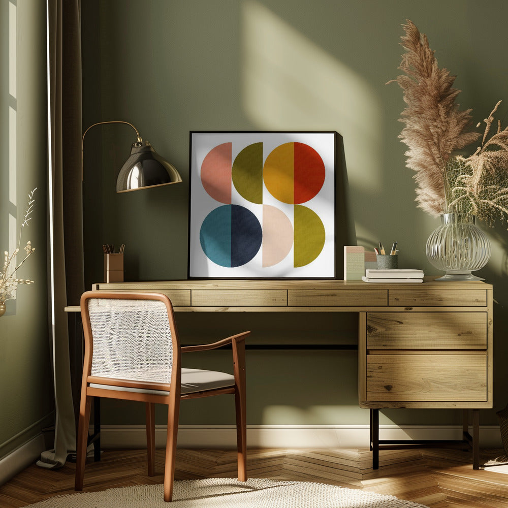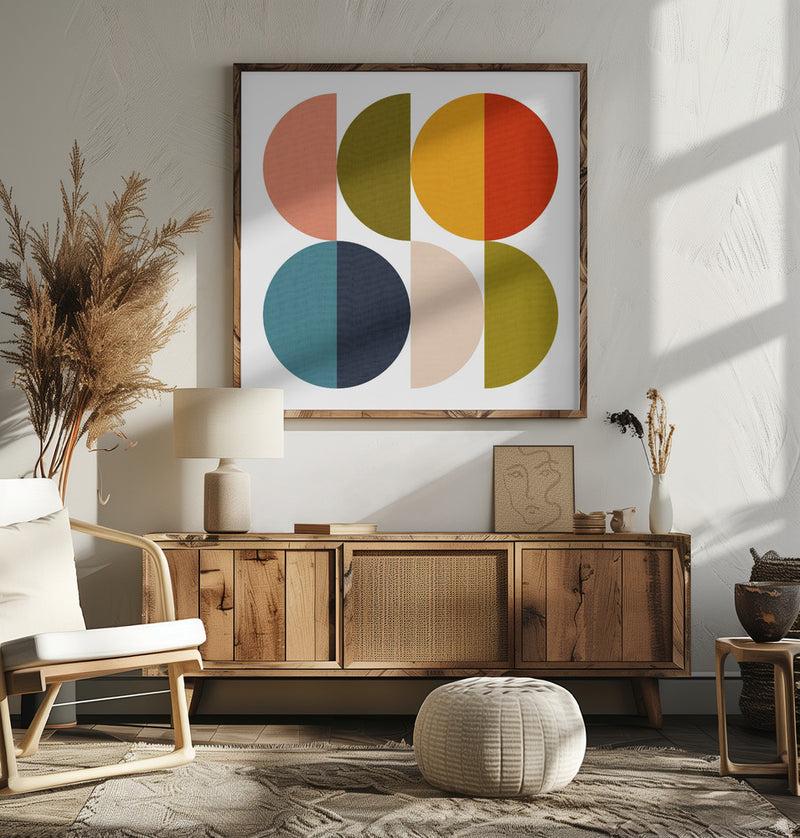 Explore our many print options for Mid Century Geometric Color Play 2 by artist Ana Rut Bre.