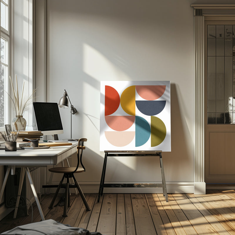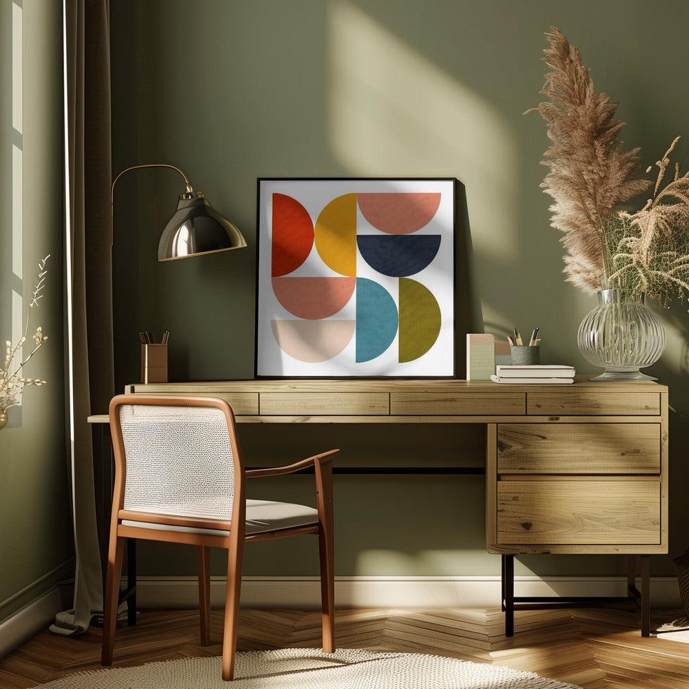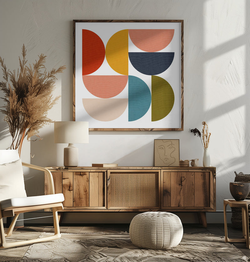 Explore our many print options for Mid Century Geometric Color Play 4 by artist Ana Rut Bre.