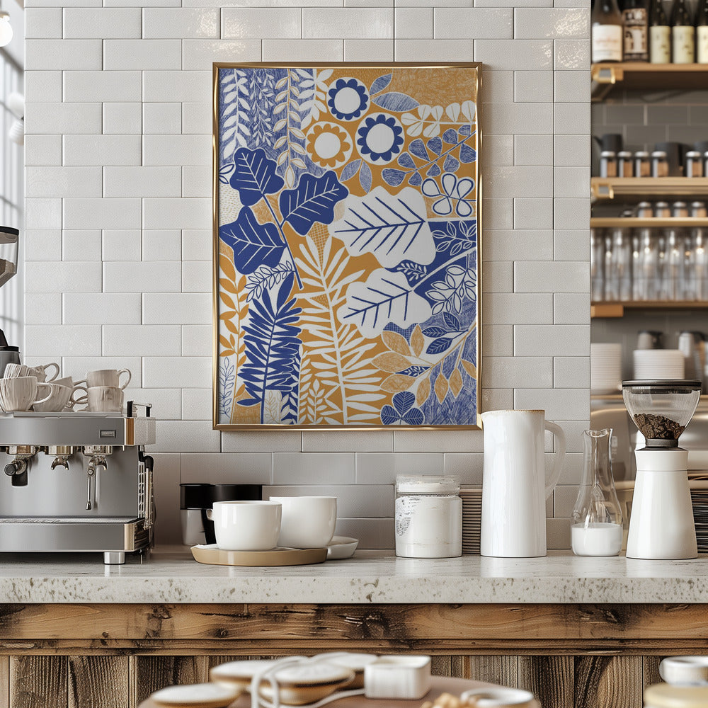 Explore our many print options for Modern Botanical Mustard & Cornflower by artist Susan Black.