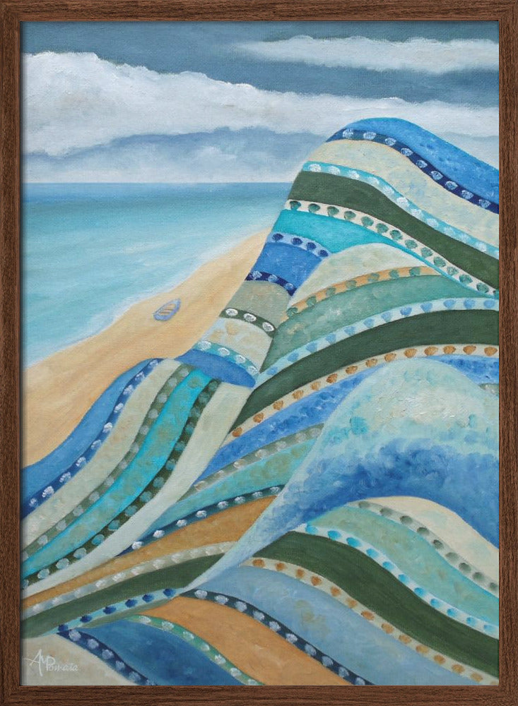 Framed Art Prints: Our framed art prints are printed onto a good quality textured art paper. A white border surrounds the design. A solid timber frame in one of four colours and a plexiglass front complete the piece.