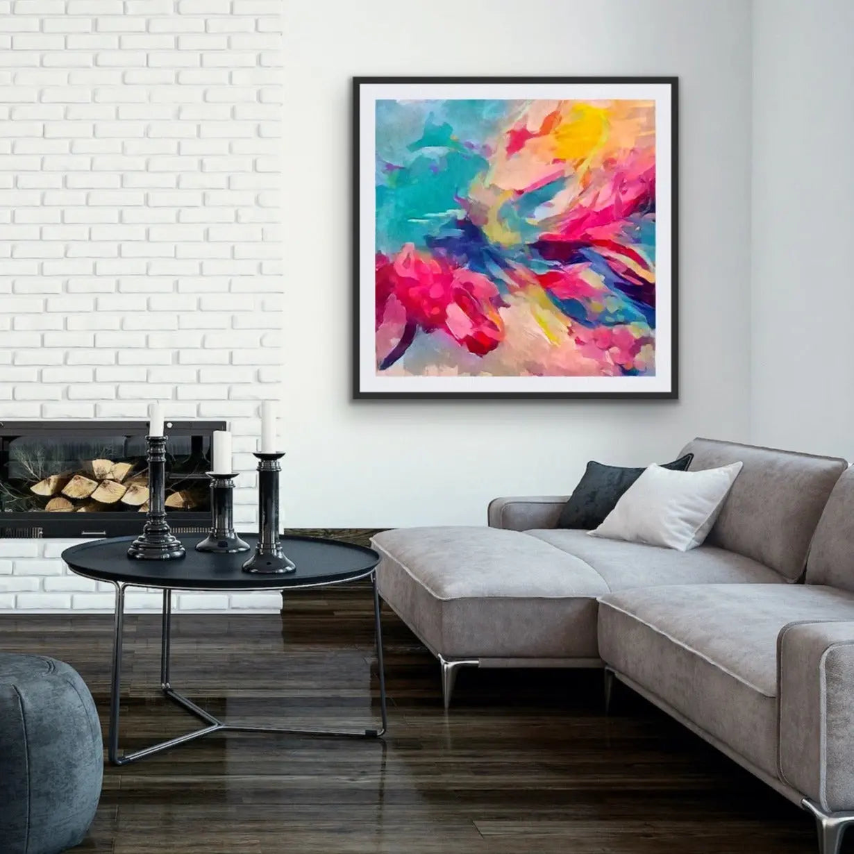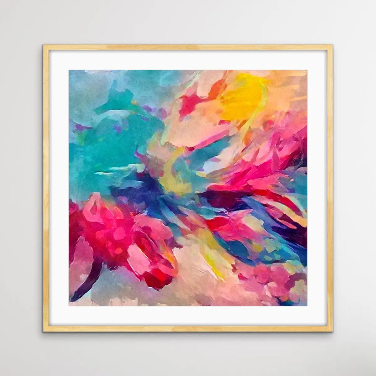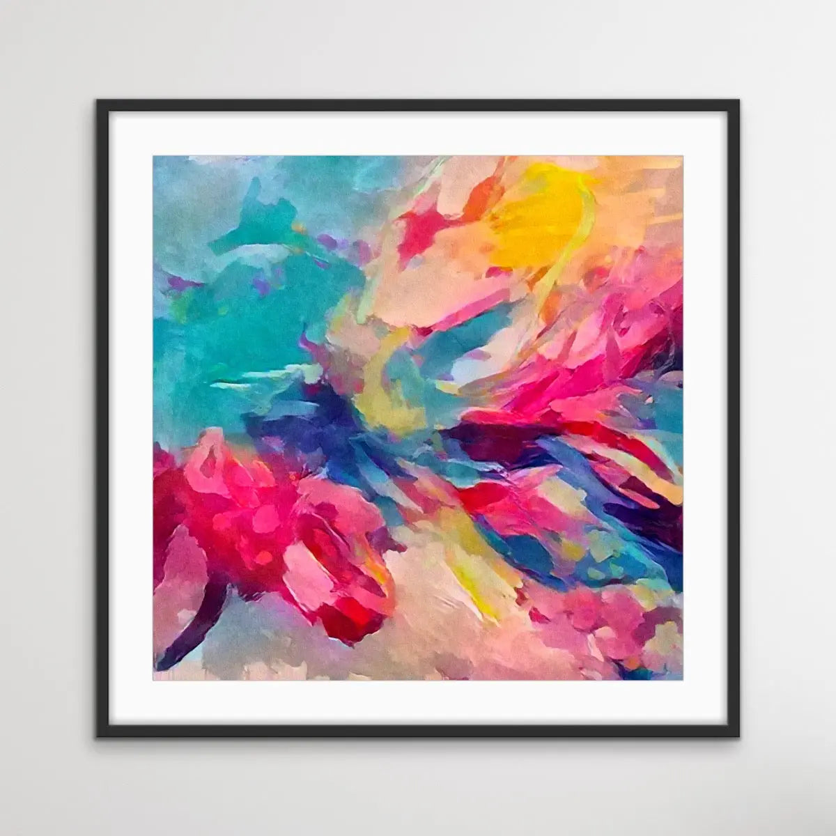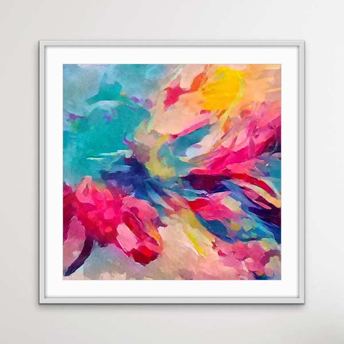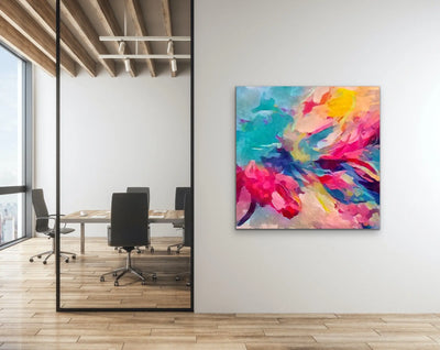 Bring instant colour and joy into your space with Pure Joy, one of our collection of original abstract floral artworks. Brights blues and pinks, with a pop of yellow, bring this stunning artwork to life.