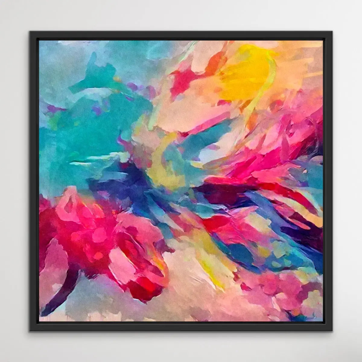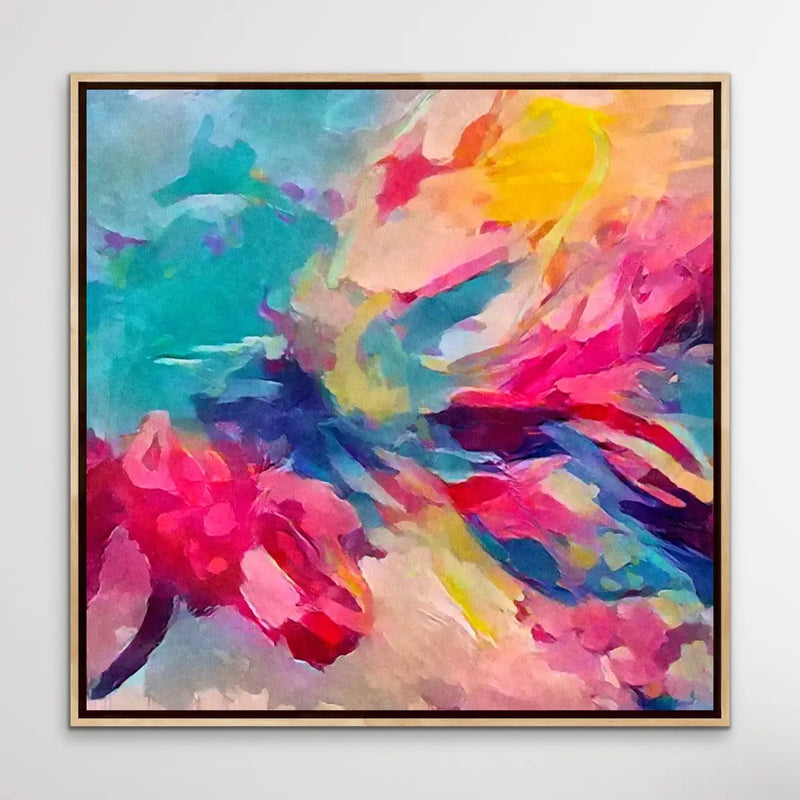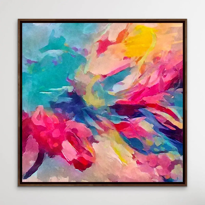 Pure Joy - Bright Colourful Abstract Pink Blue Floral Canvas or Art Print