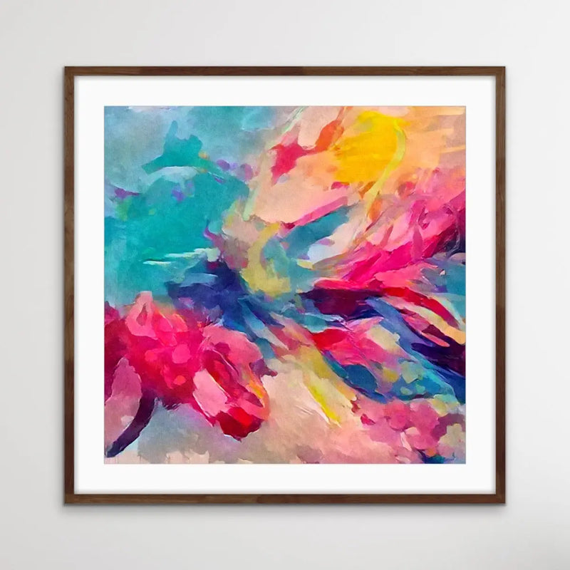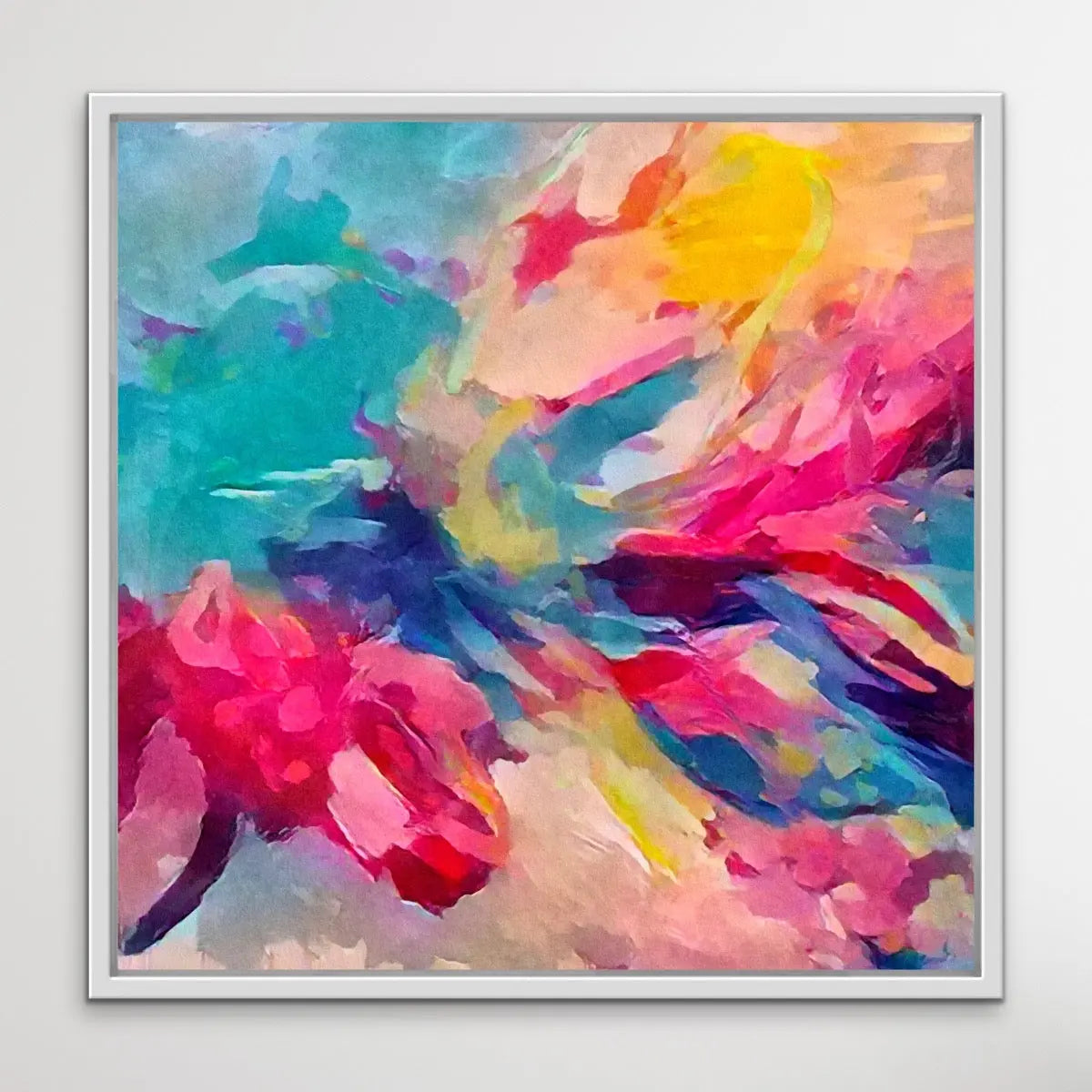 Pure Joy - Bright Colourful Abstract Pink Blue Floral Canvas or Art Print - I Heart Wall Art