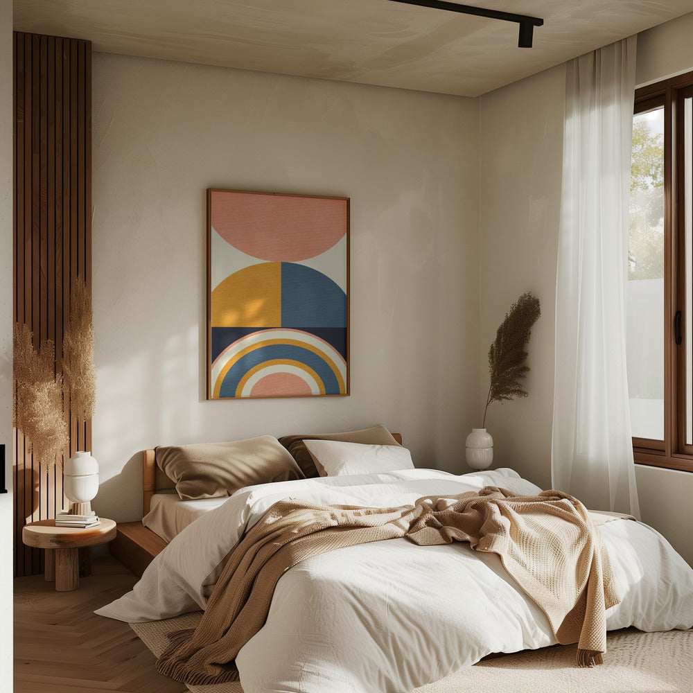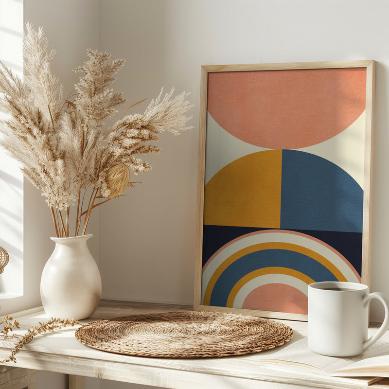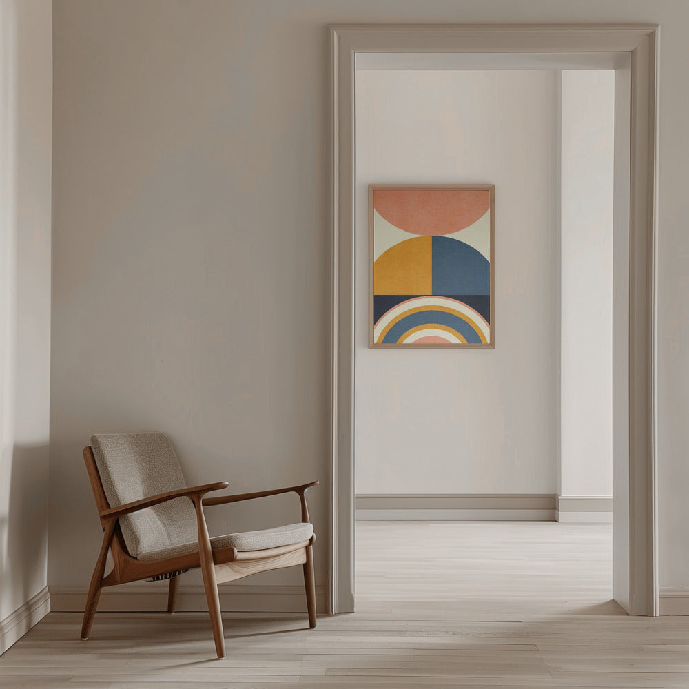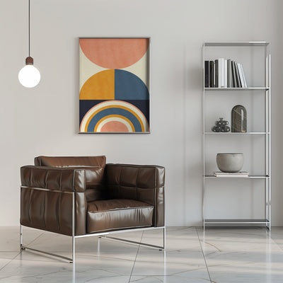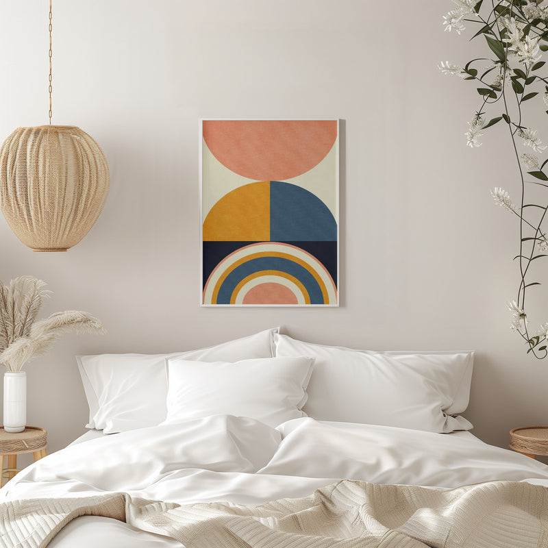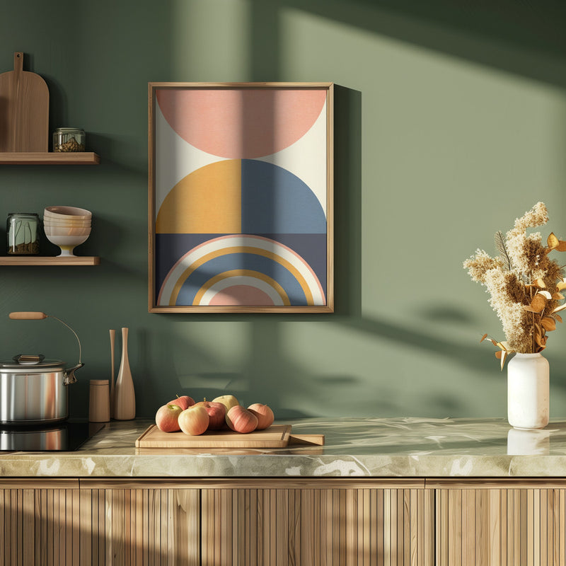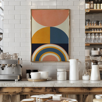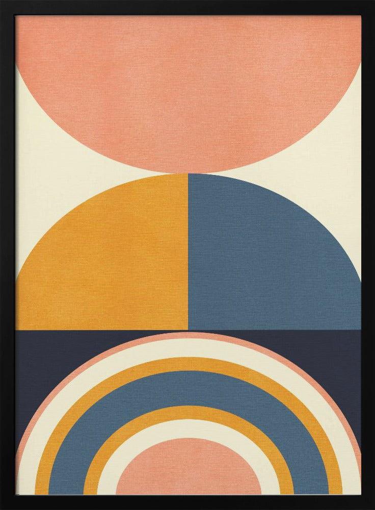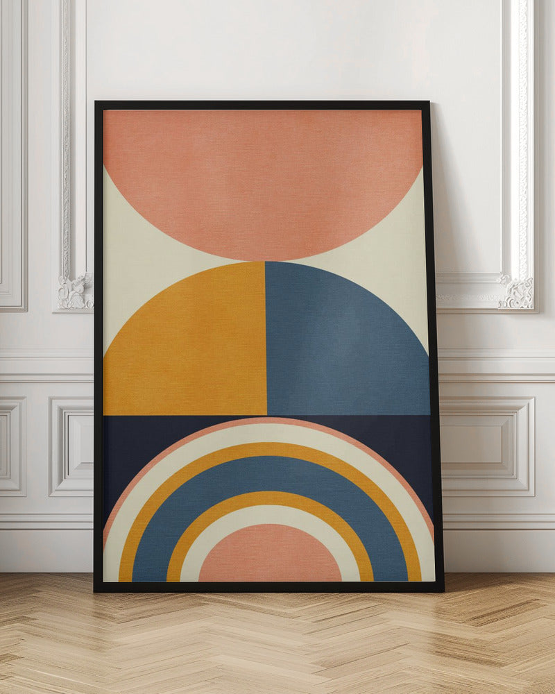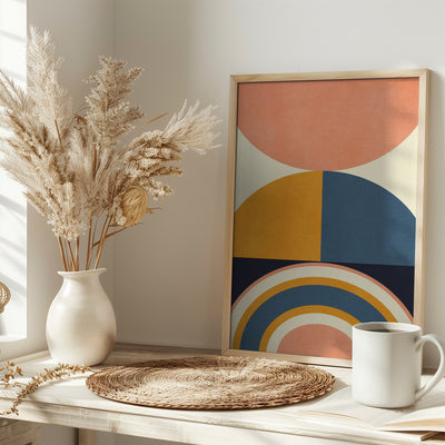 Explore our many print options for Rainbow Plus Shapes Blue Mustard10 by artist Ana Rut Bre.
