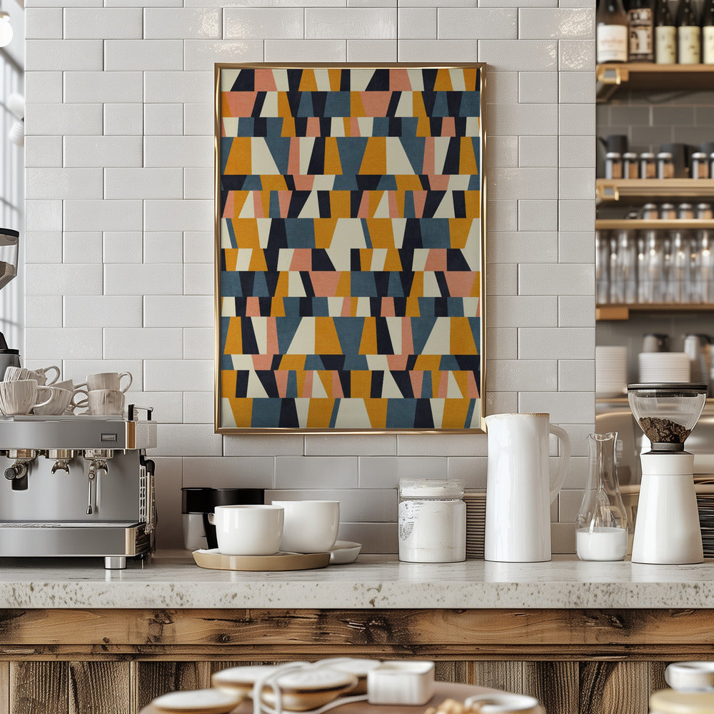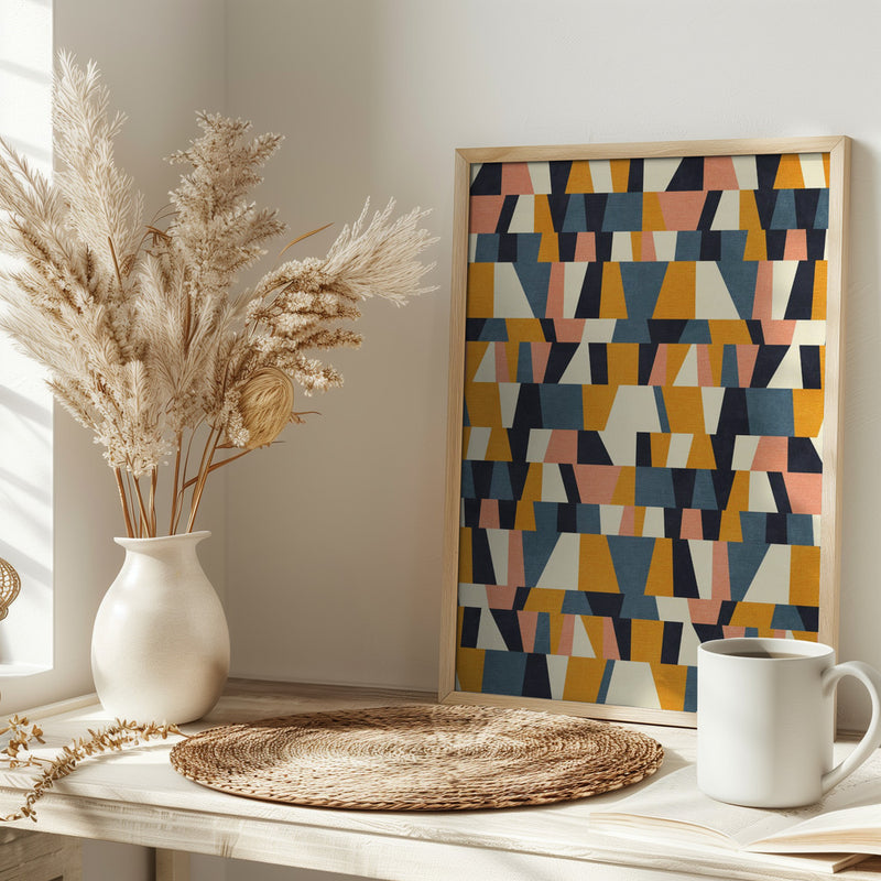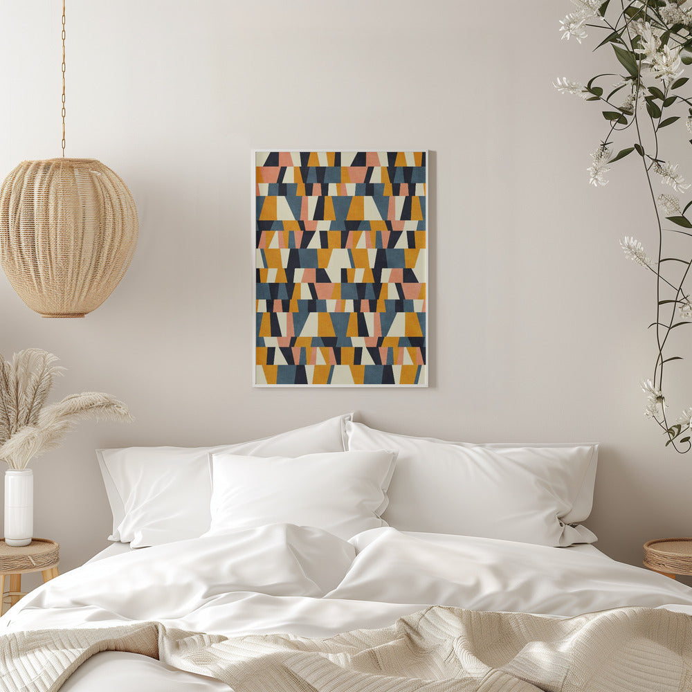 Explore our many print options for Rainbow Plus Shapes Blue Mustard14 by artist Ana Rut Bre.