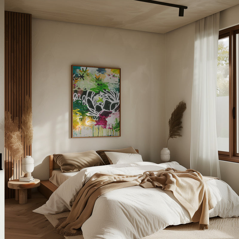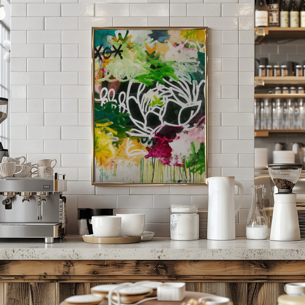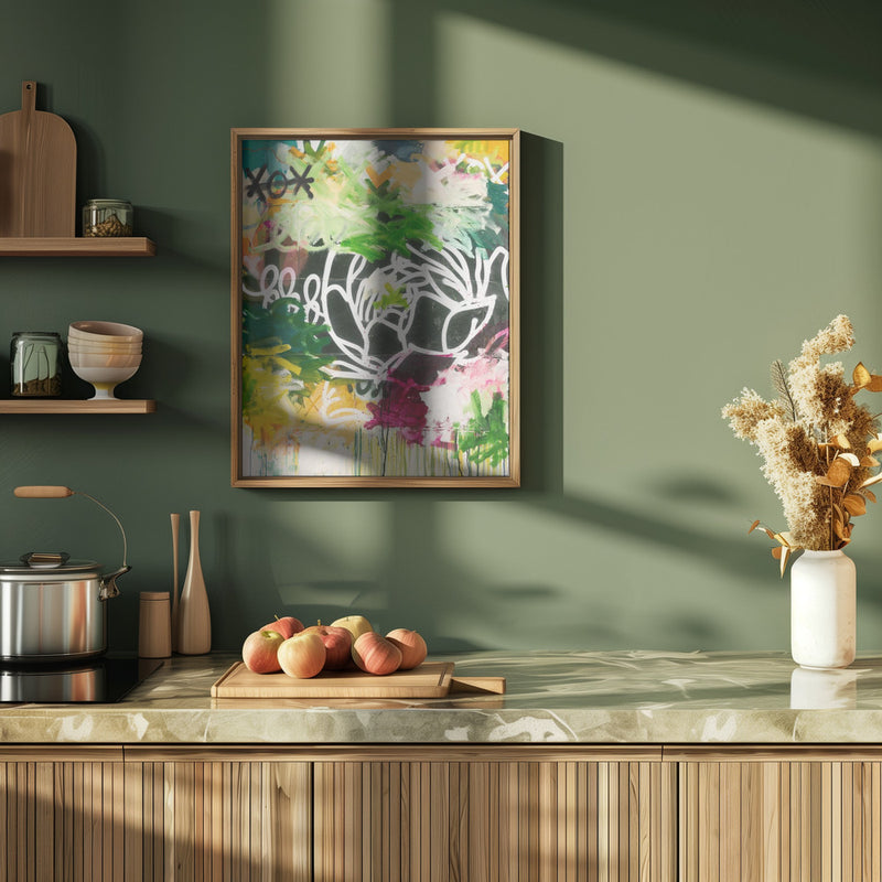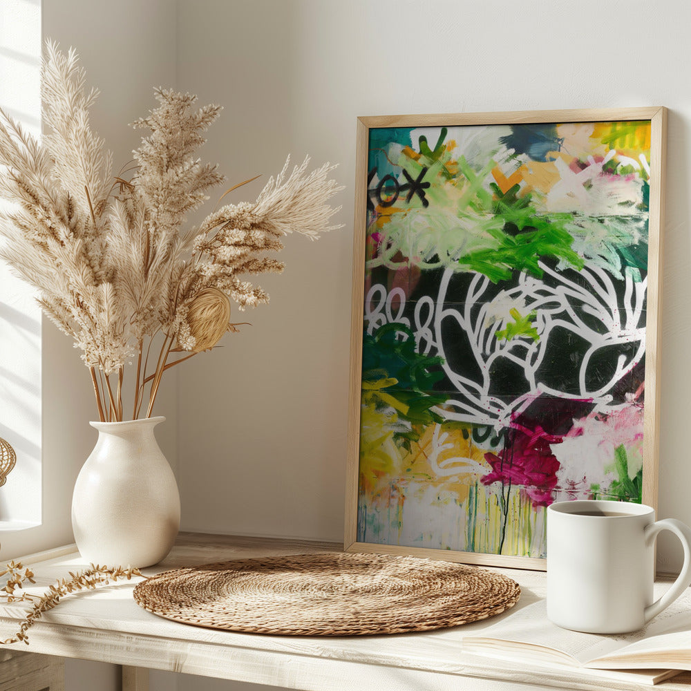 Framed Art Prints: Our framed art prints are printed onto a good quality textured art paper. A white border surrounds the design. A solid timber frame in one of four colours and a plexiglass front complete the piece.