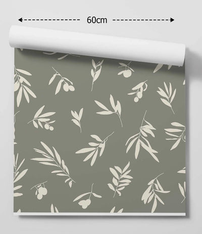 'Harriet' - Vintage White and Green Leaf Removable Wallpaper