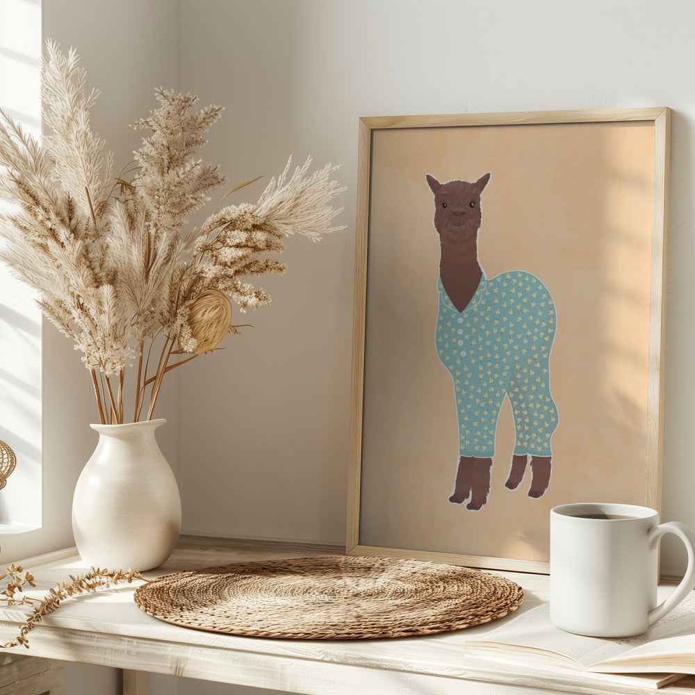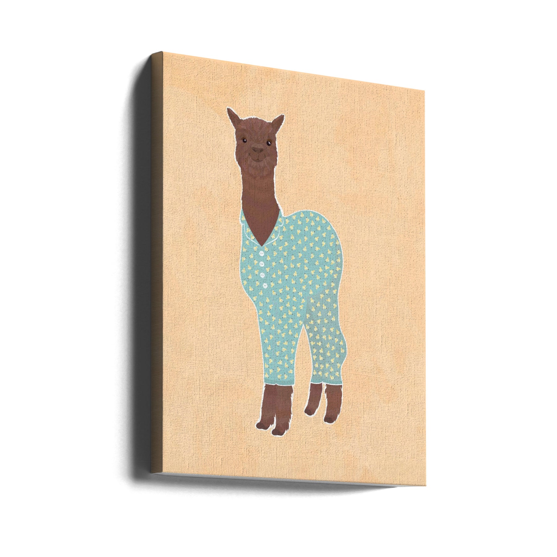 Explore our many print options for Llama In Pjs Banana Orange by artist Sarah Manovski.