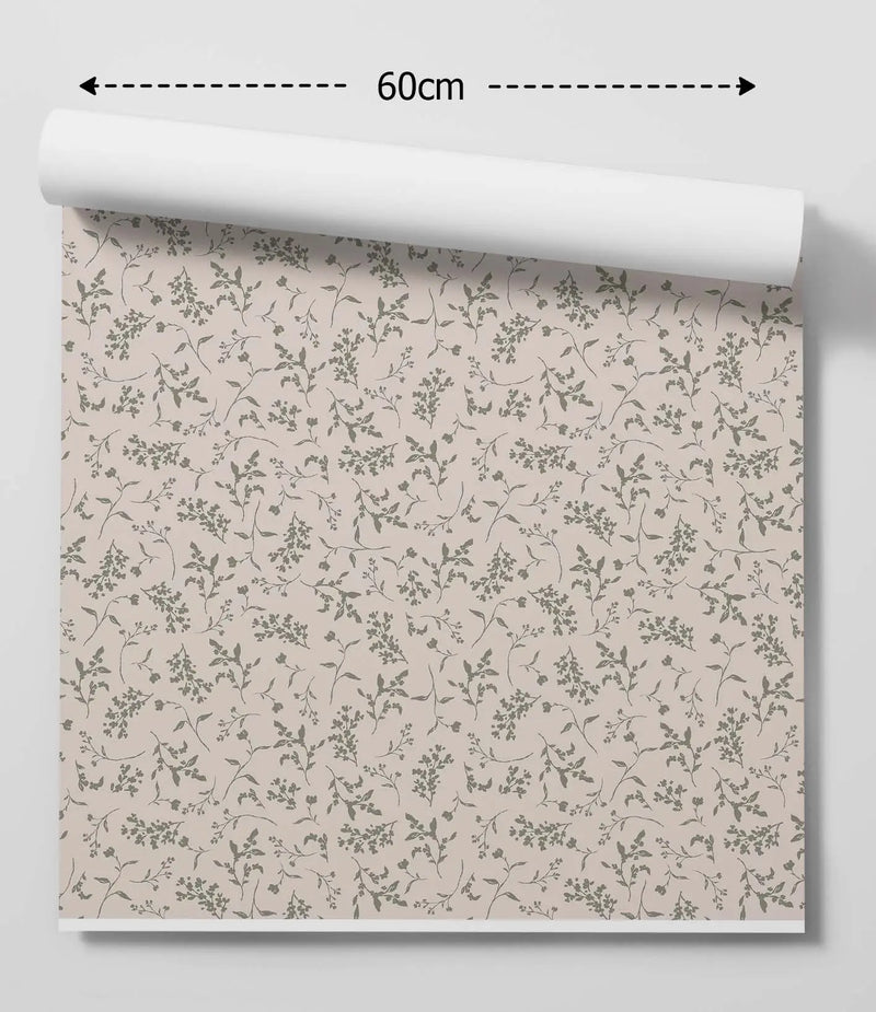 'Lulu In Green' - Vintage Green and Cream Leaf Removable Wallpaper