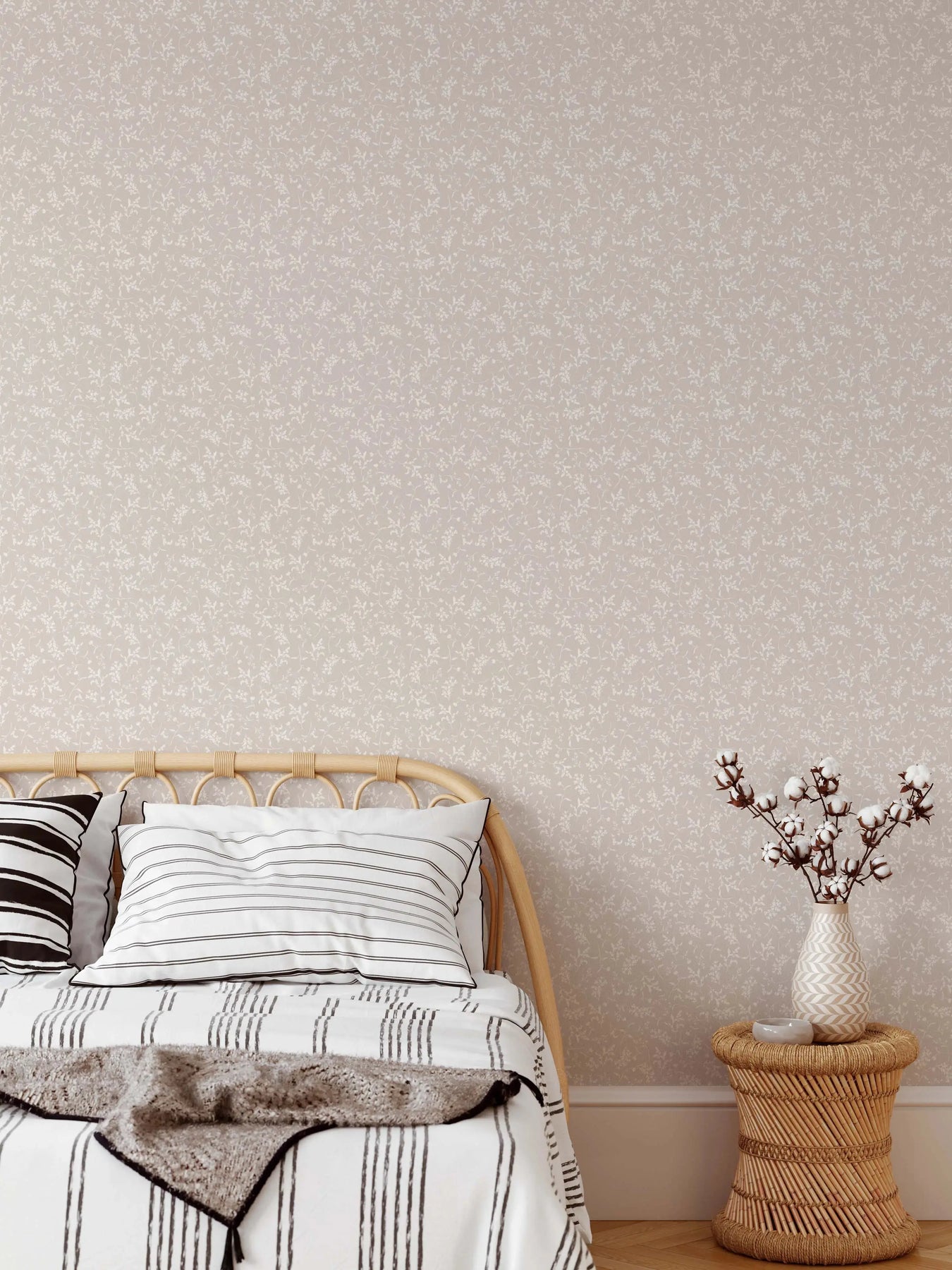 'Lulu In Neutral' - Vintage White and Cream Leaf Removable Wallpaper