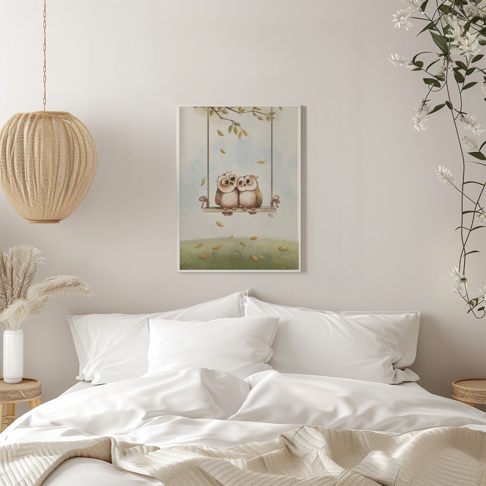 Owls in love - Stretched Canvas, Poster or Fine Art Print