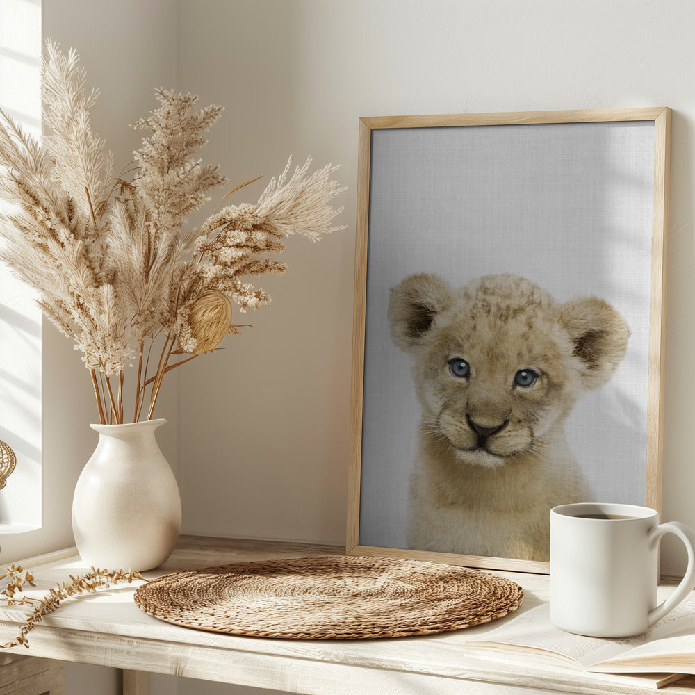 Explore our many print options for Peekaboo Baby Lion by artist Lola Peacock.