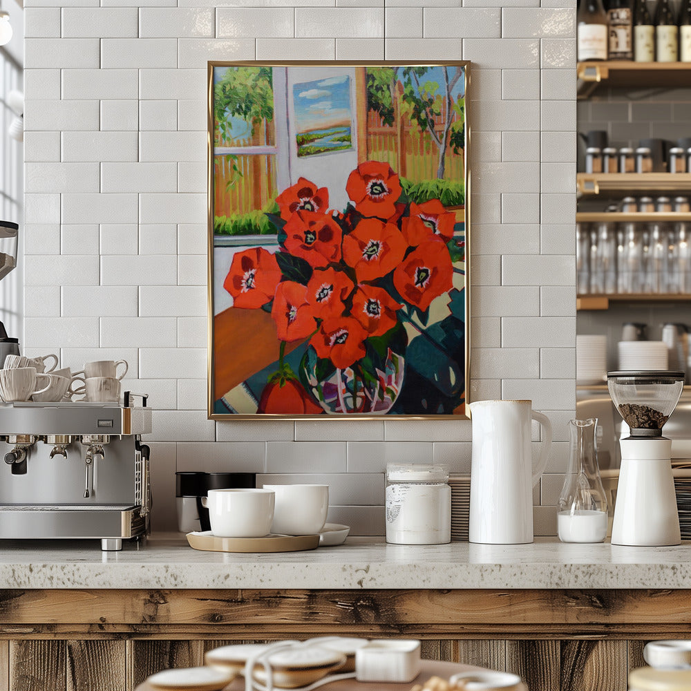 Framed Art Prints: Our framed art prints are printed onto a good quality textured art paper. A white border surrounds the design. A solid timber frame in one of four colours and a plexiglass front complete the piece.
