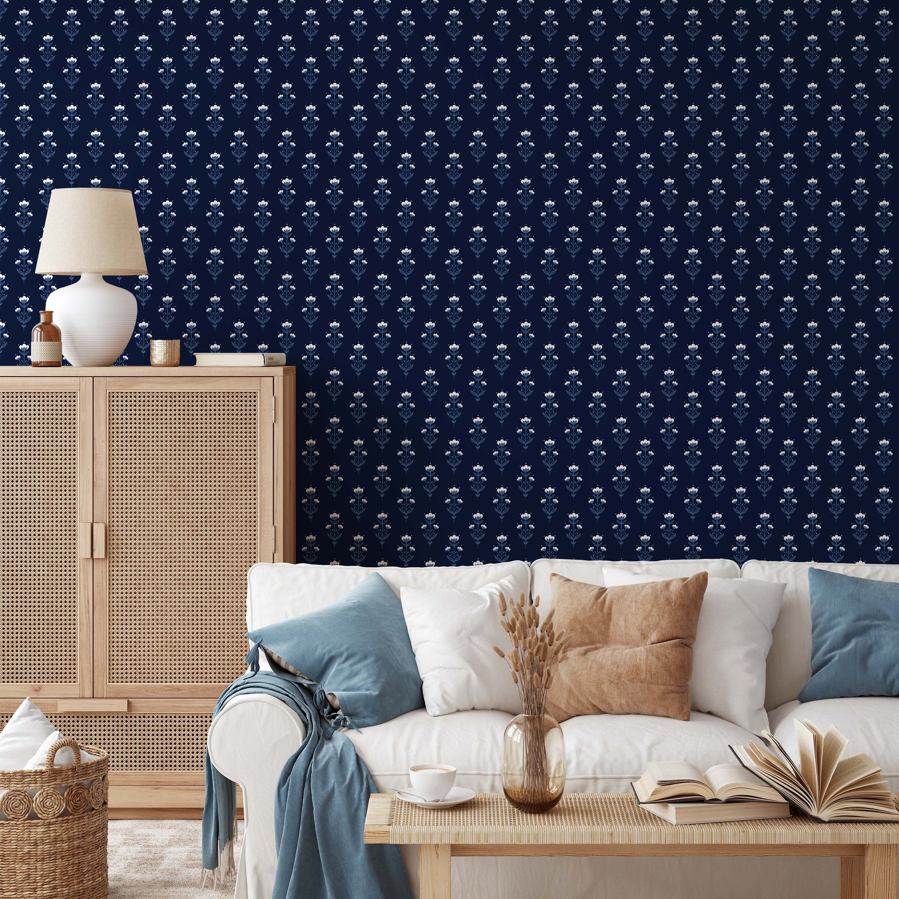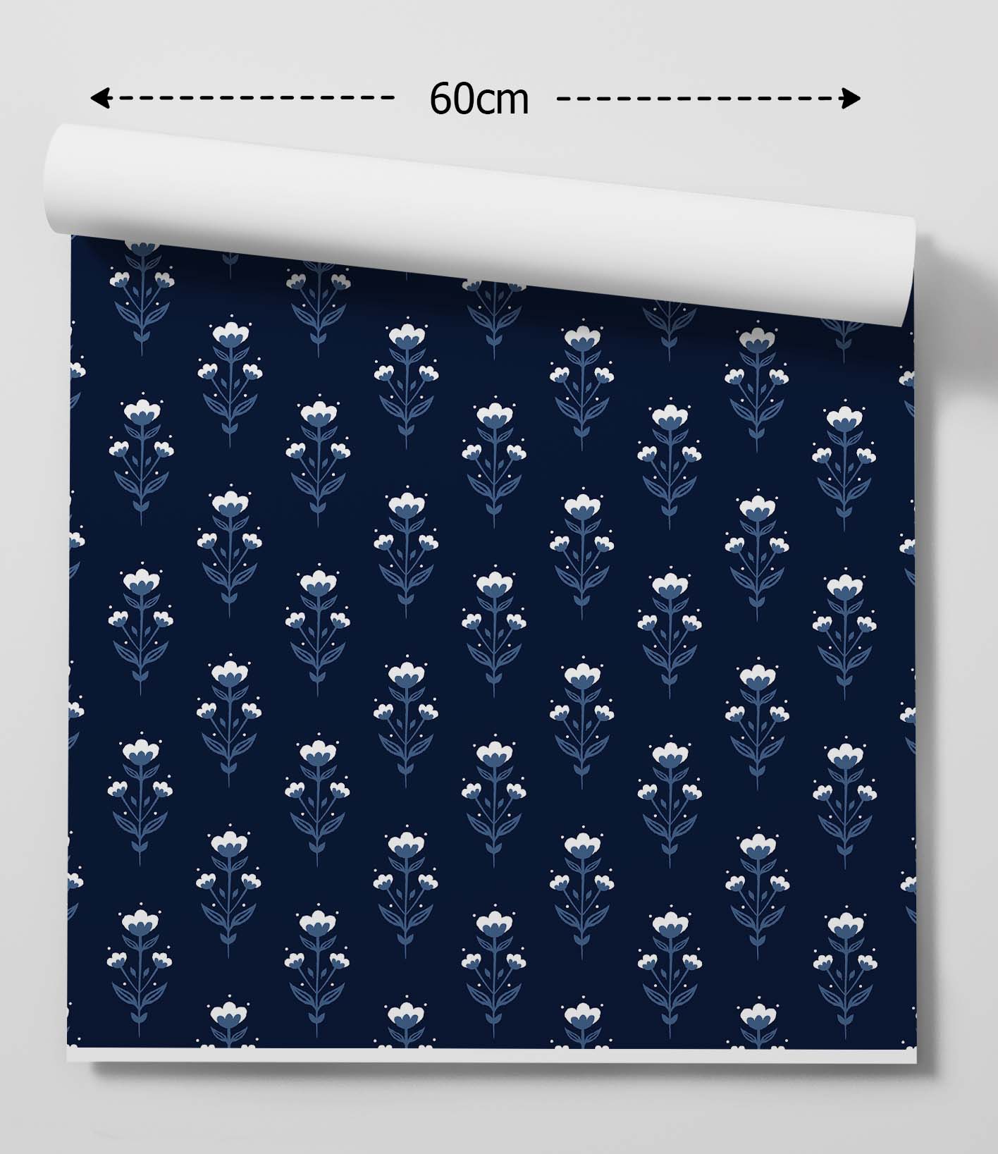 'Snow Flower' - Blue & White Floral Removable Wallpaper
