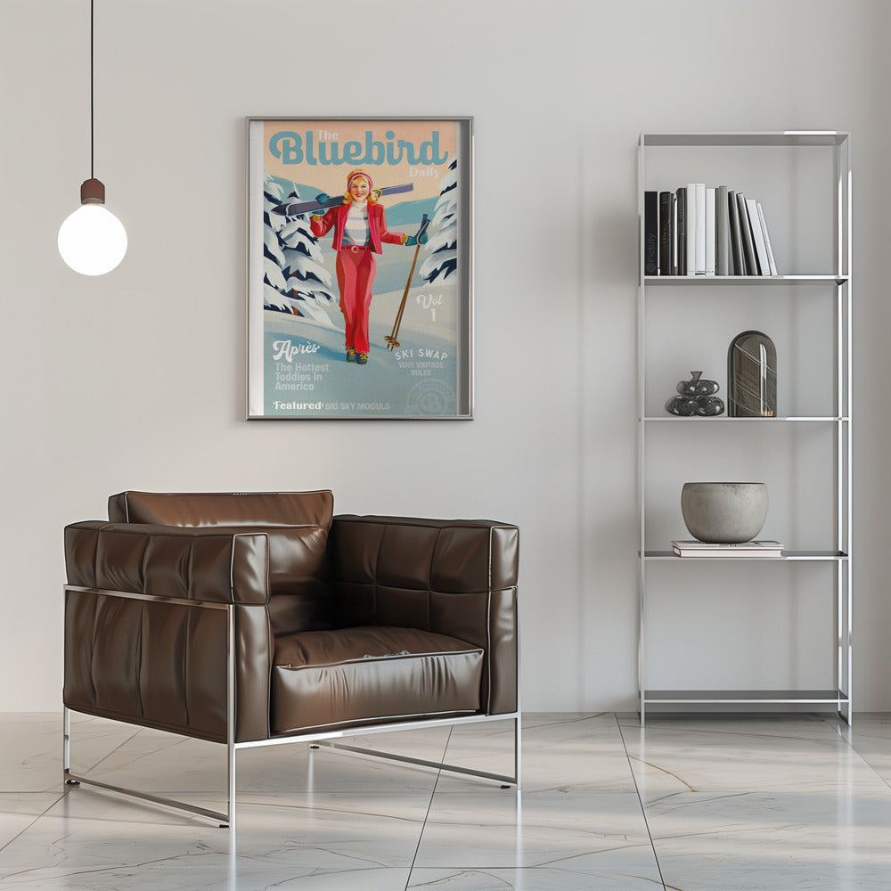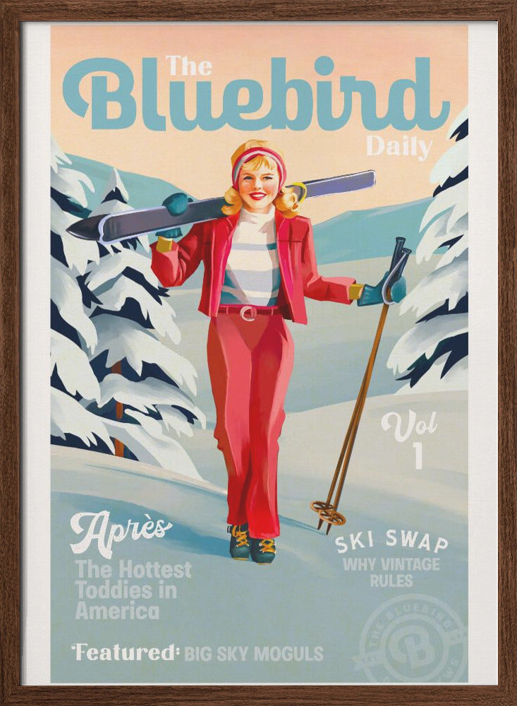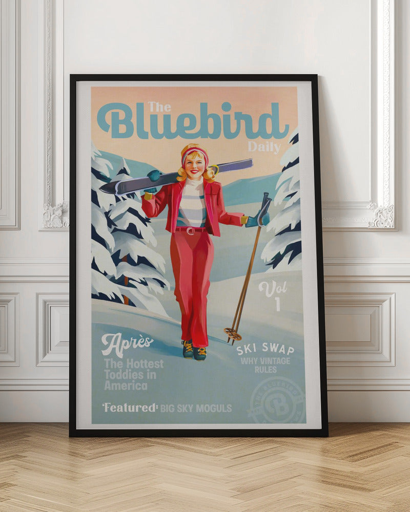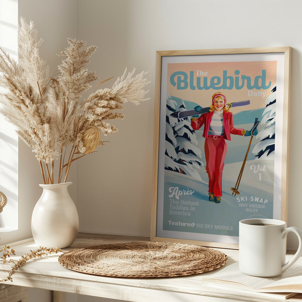 Explore our many print options for The Bluebird Daily Pinup Ski Art by artist The Whiskey Ginger.