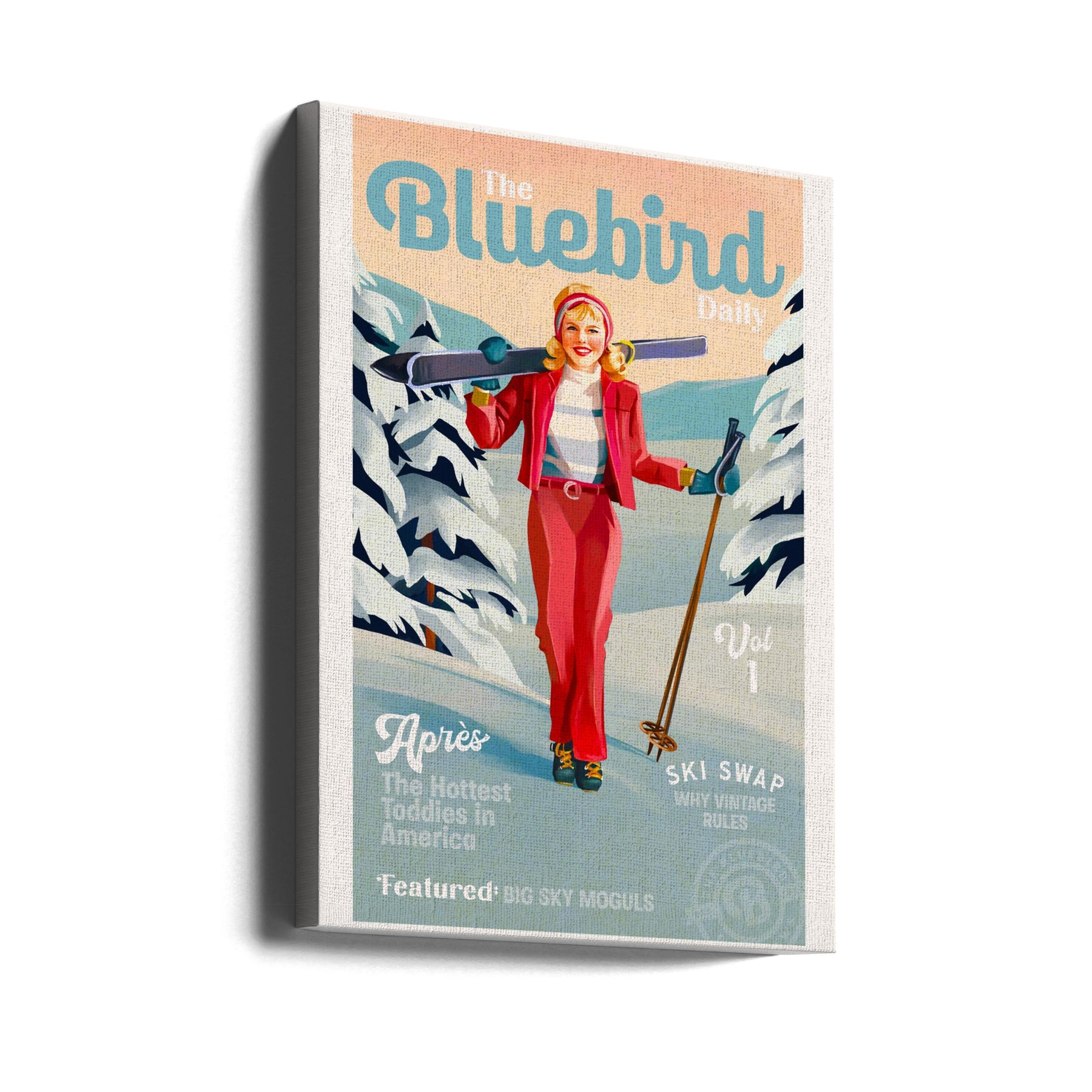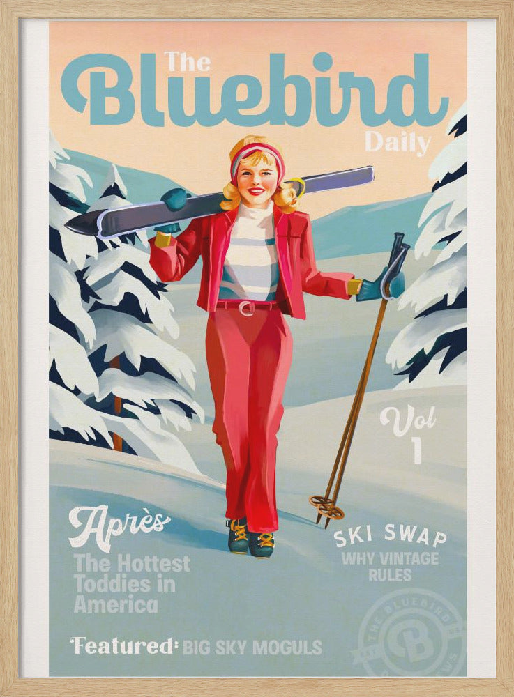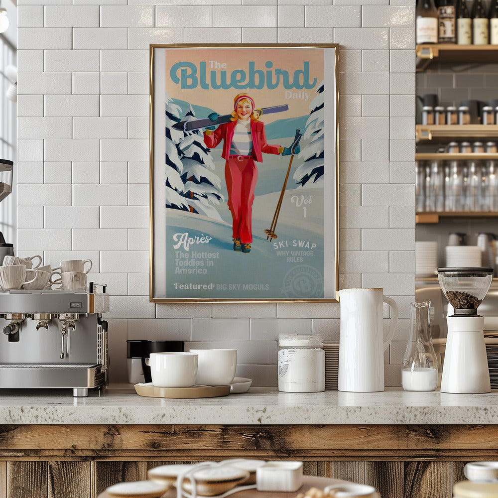 Explore our many print options for The Bluebird Daily Pinup Ski Art by artist The Whiskey Ginger.