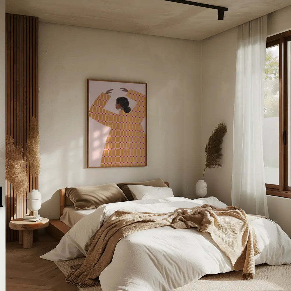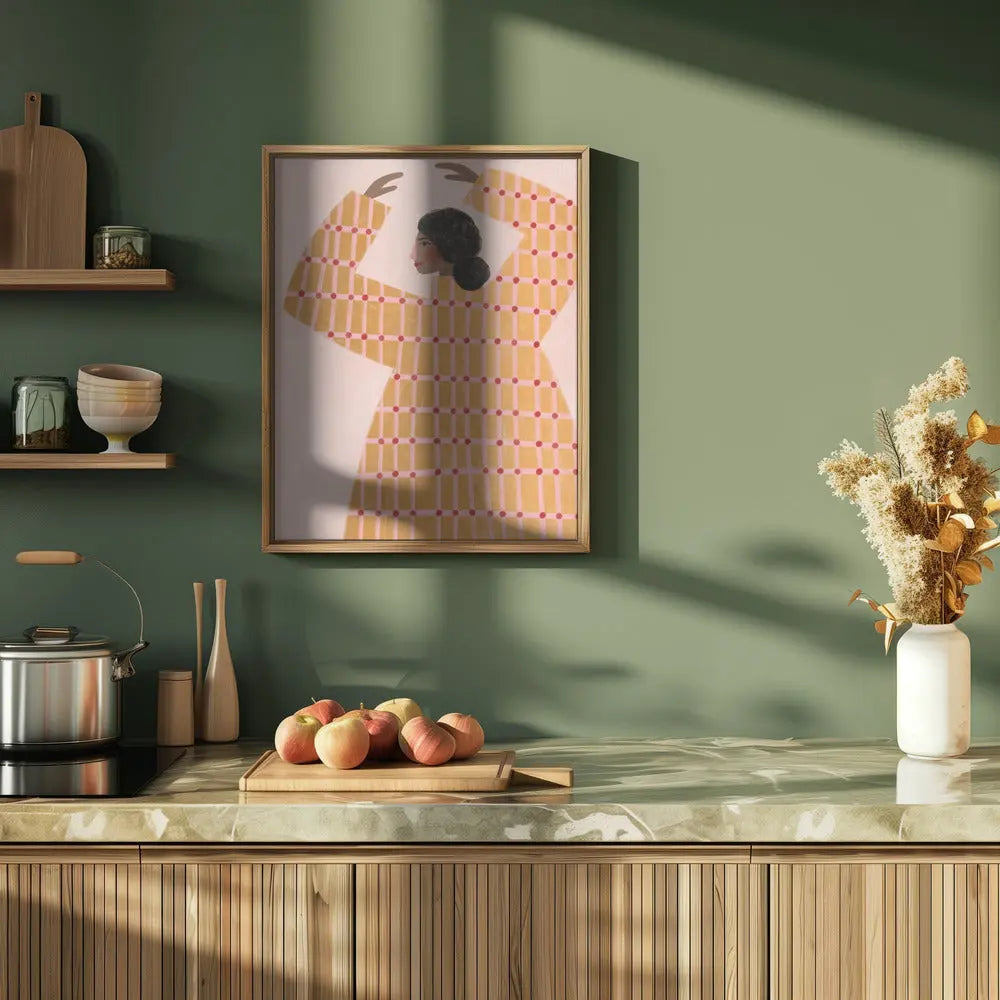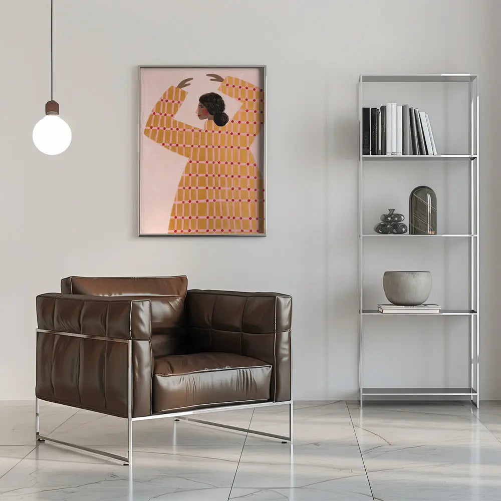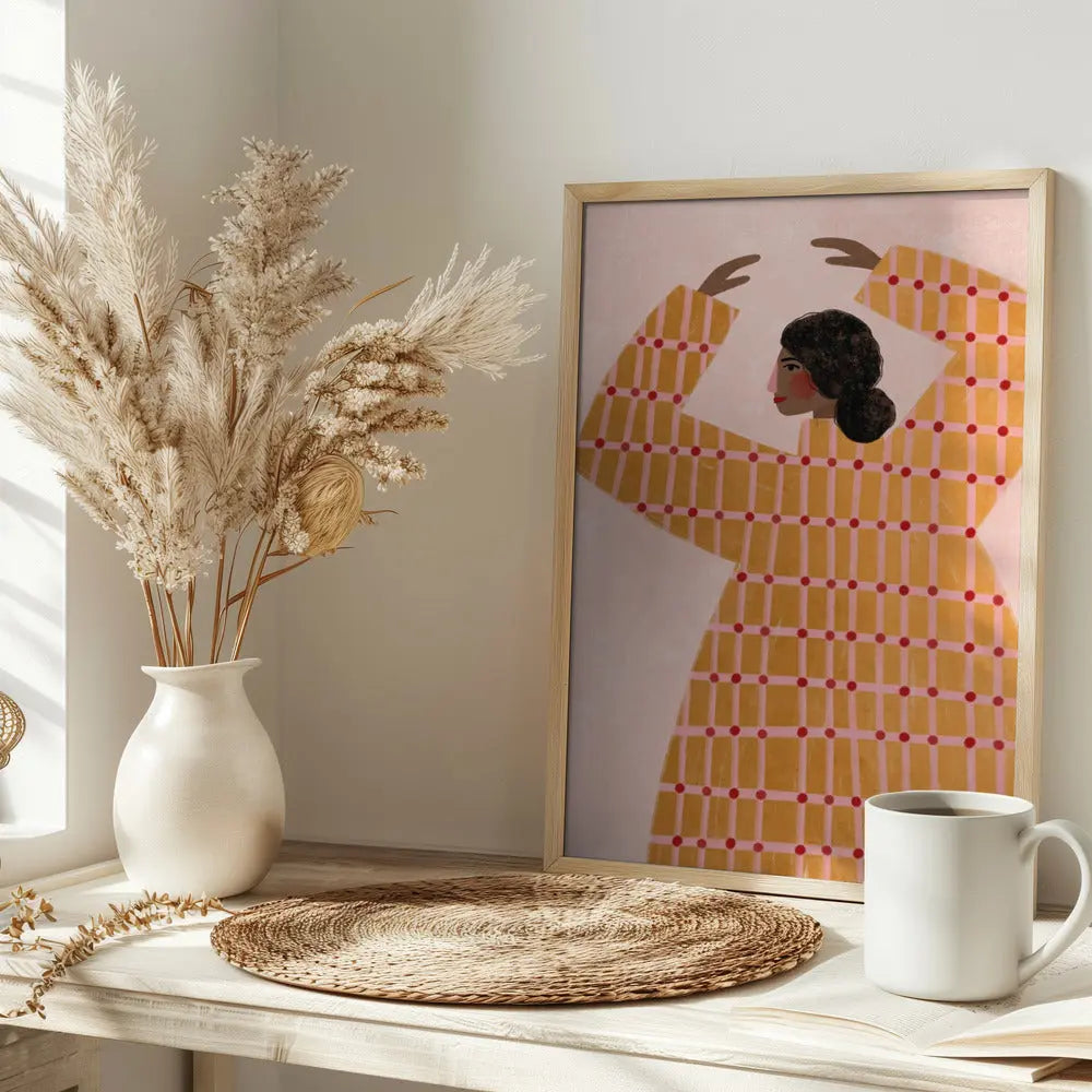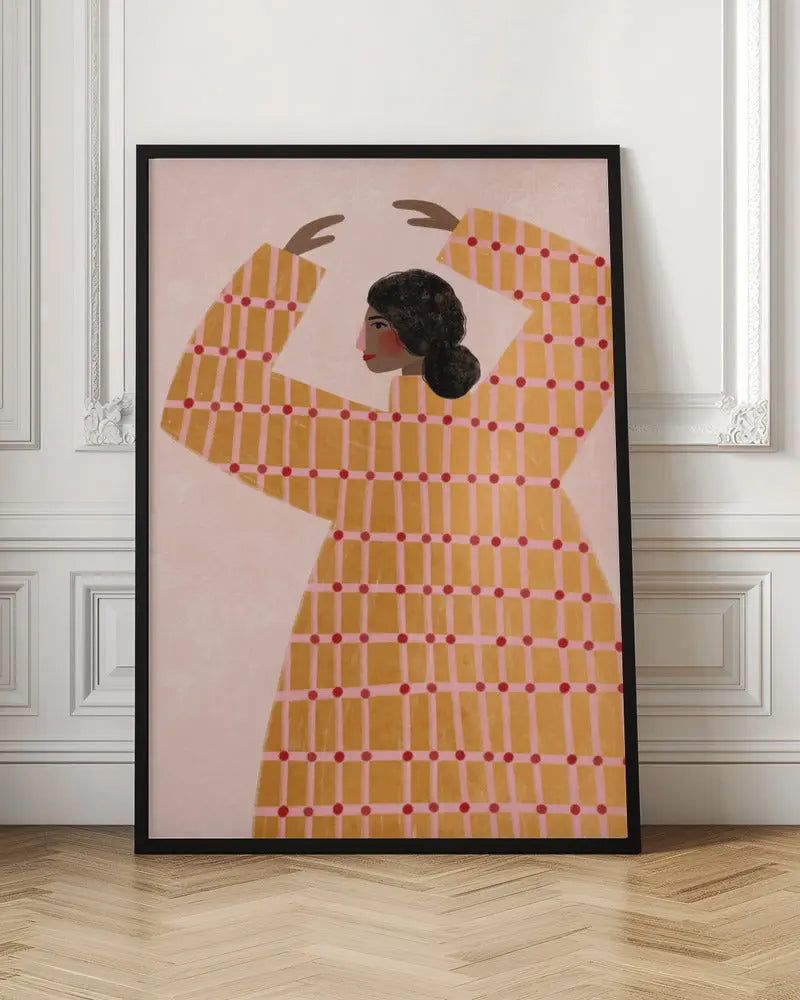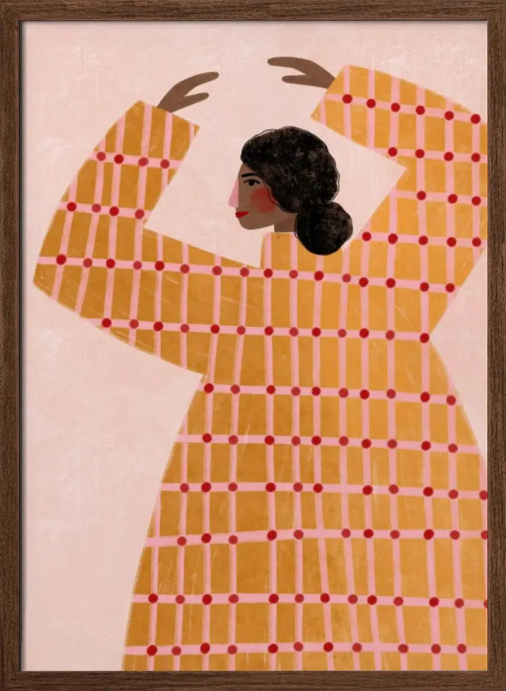 Explore our many print options for The Woman With the Checked Dress by artist Bea Müller.