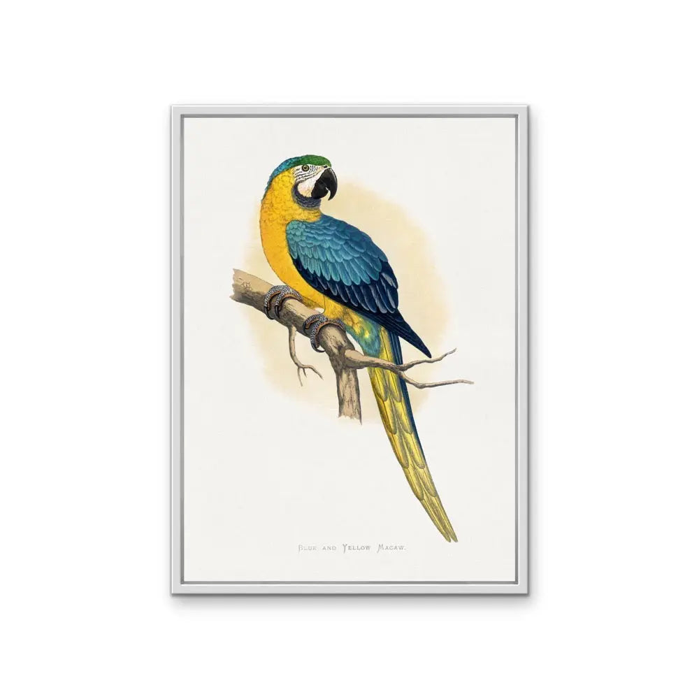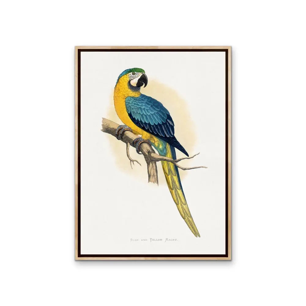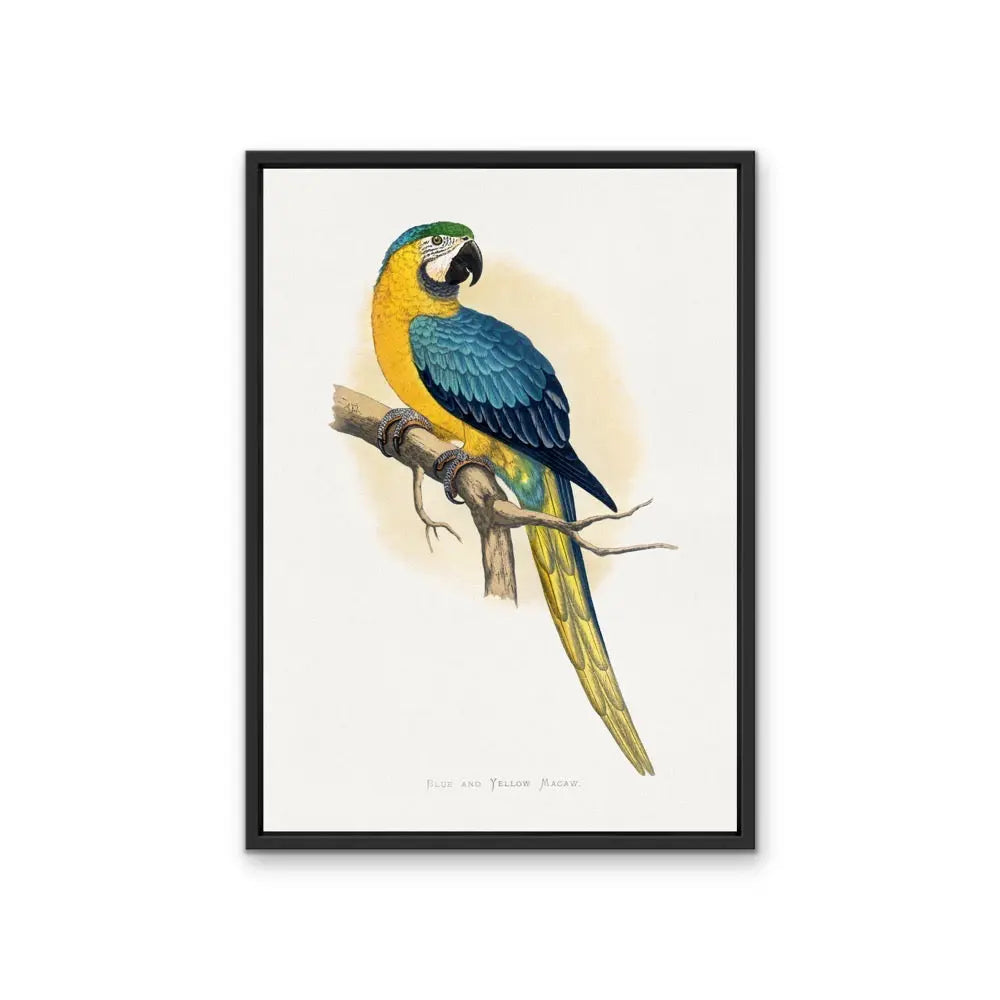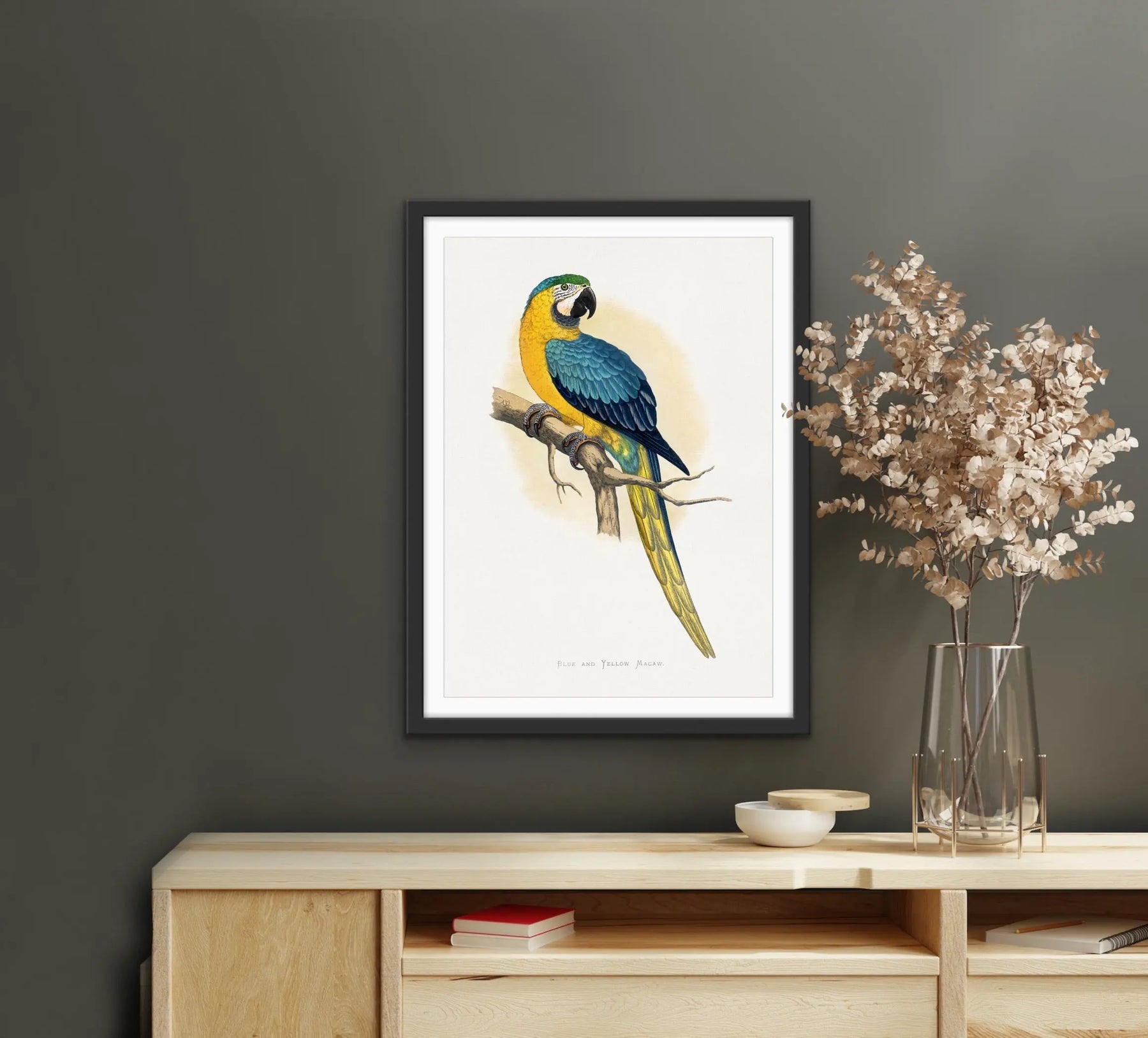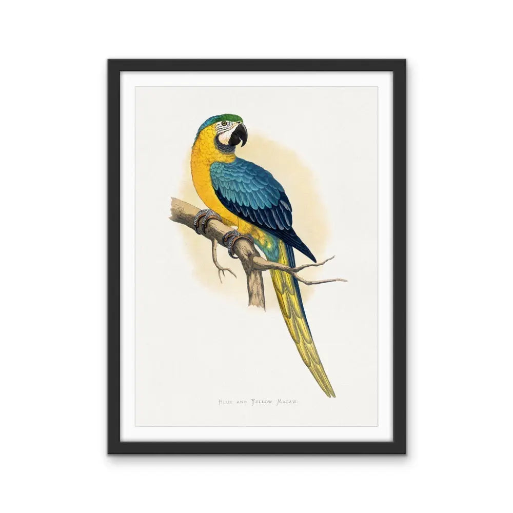 This is a re-print of a beautiful vintage illustration of a blue and yellow macaw by Alexander Frances Lydon.