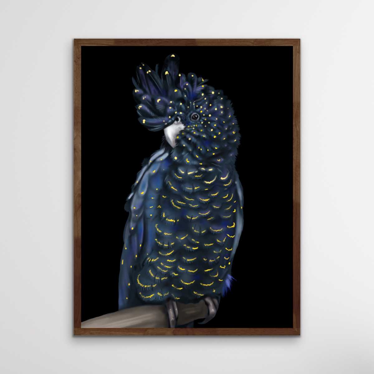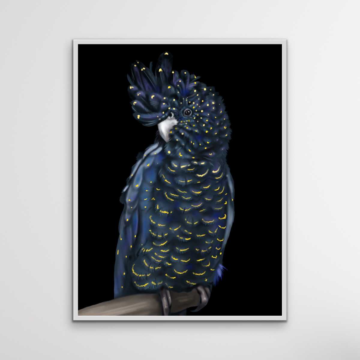 Black Cockatoo is a much-loved piece from our black cockatoo collection. This gorgeous bird has been painted with some yellow against a black background.