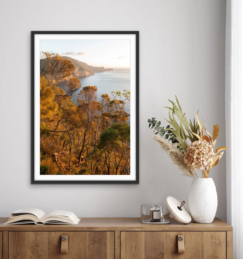This stunning photographic print features Cape Huay, captured in beautiful Autumnal tones.
