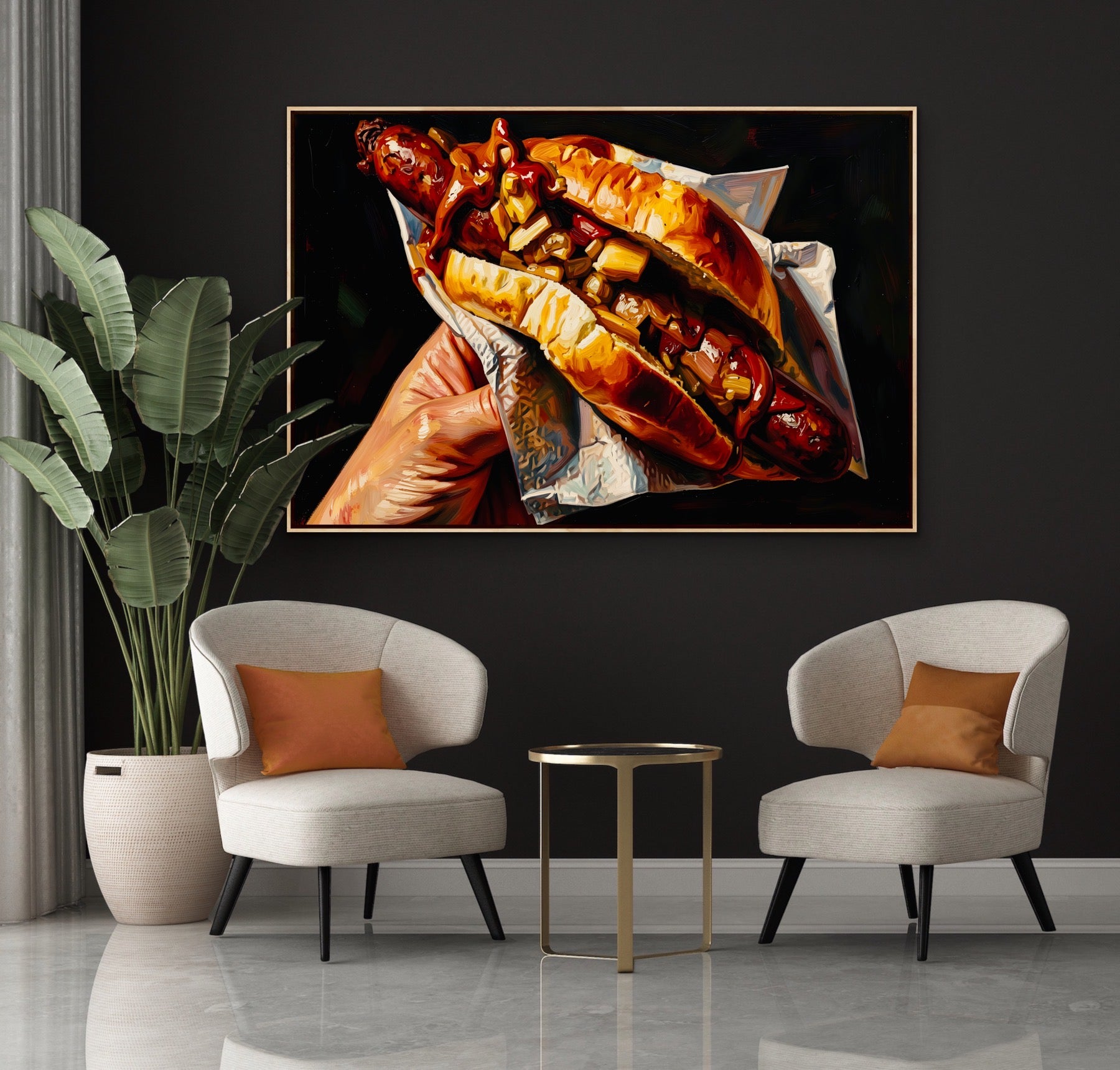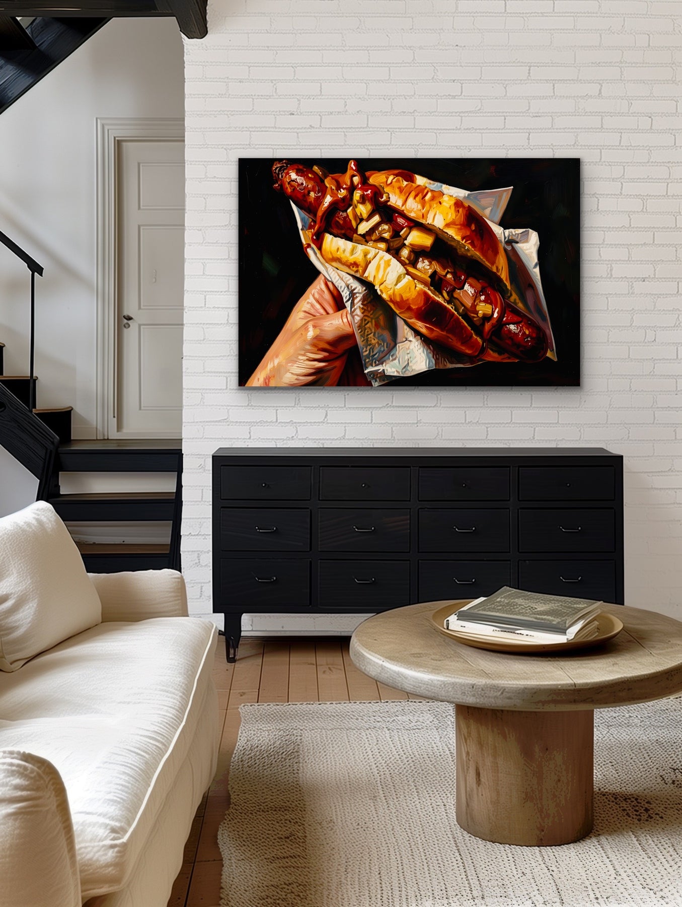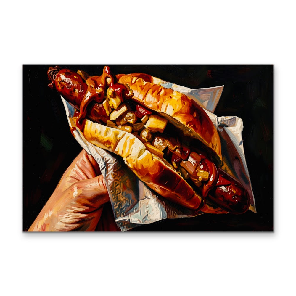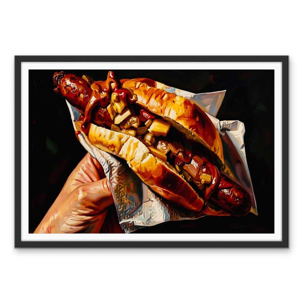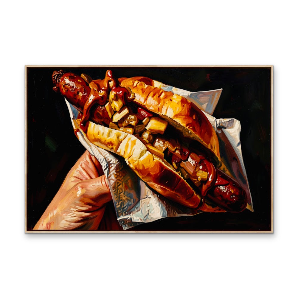 It's an Australian culinary classic, and we're bringing it to your walls! Celebrate the magic of a sausage in bread (or sausage sandwich) with this fun, dark-toned artwork.