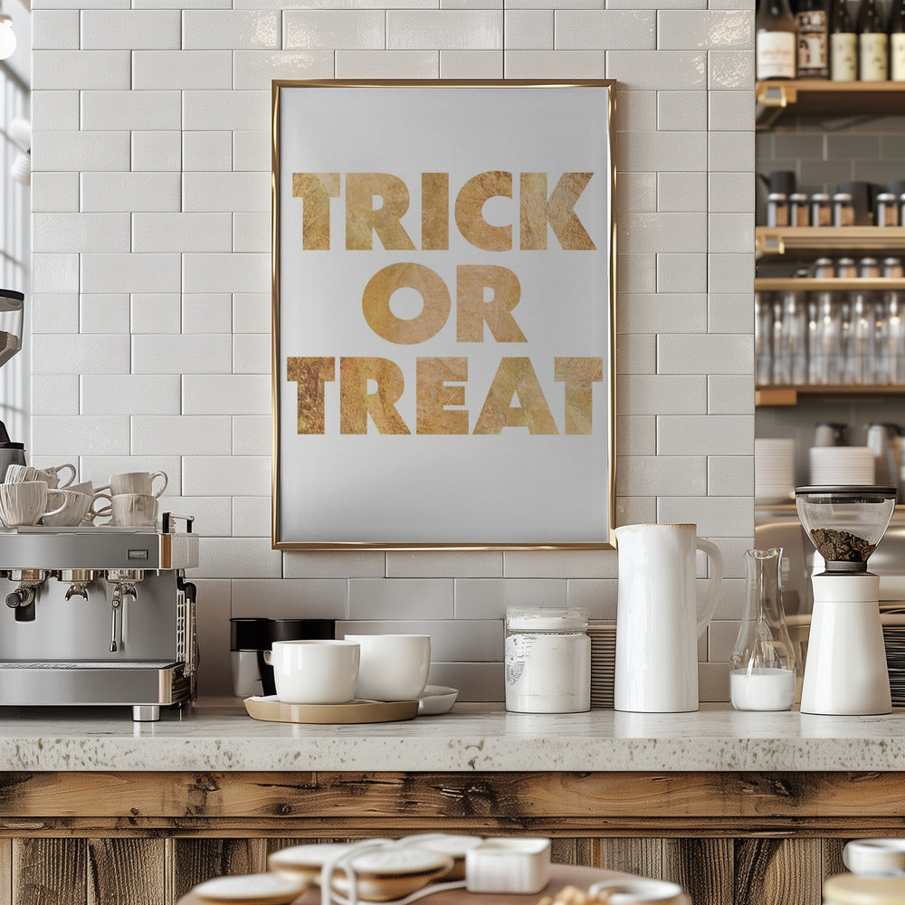 Explore our many print options for Trick or Treat GOLD typography by artist Sarah Manovski.
