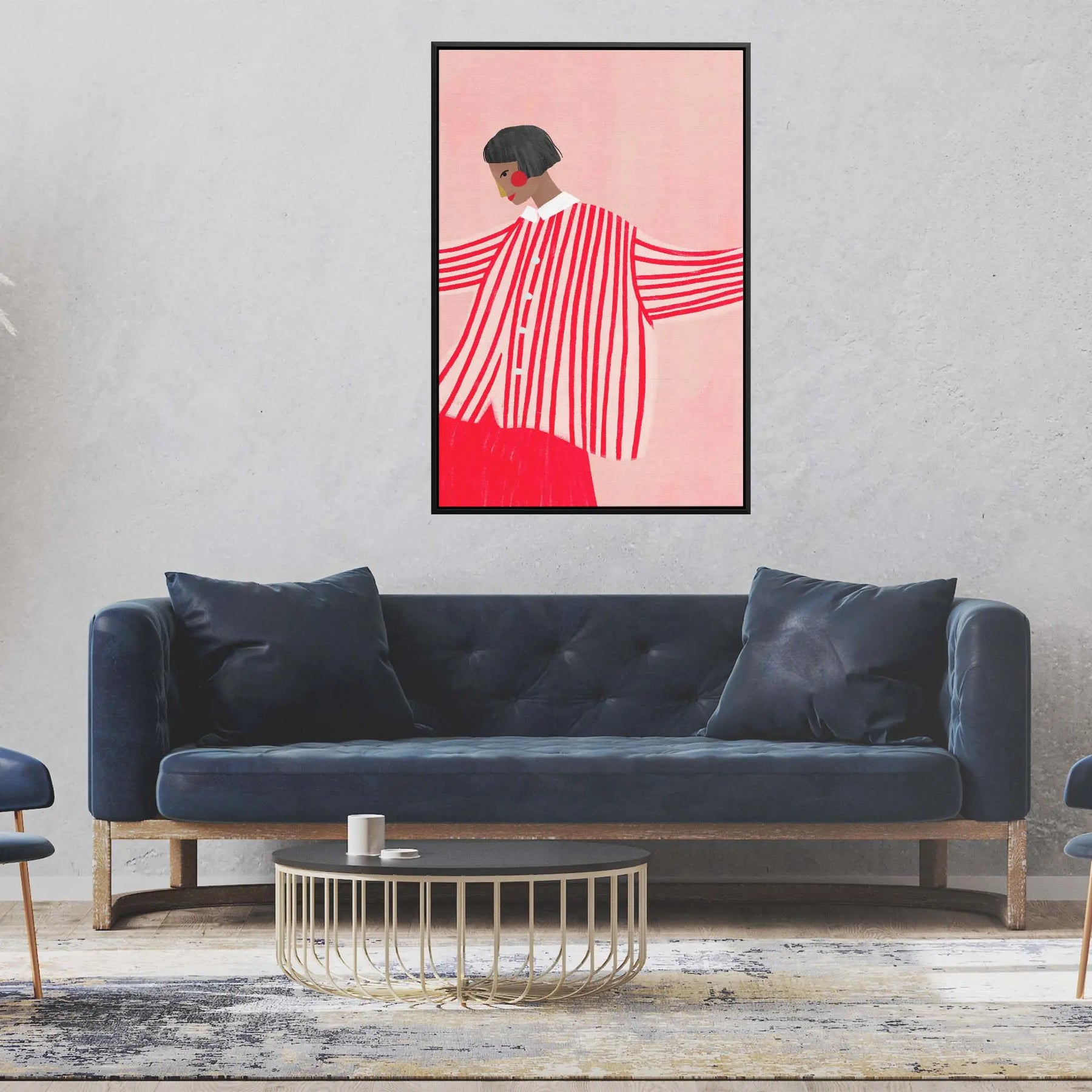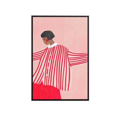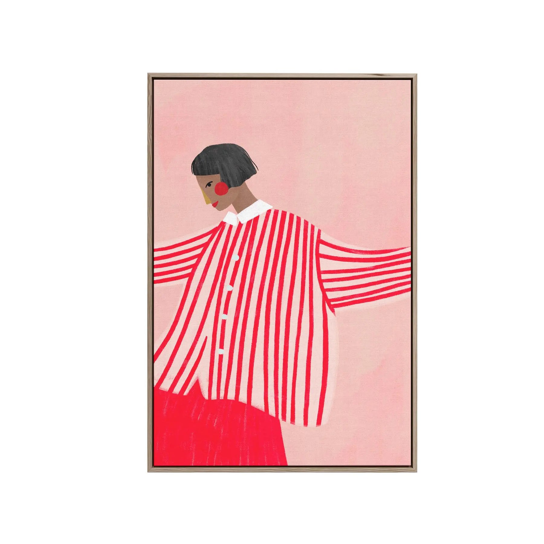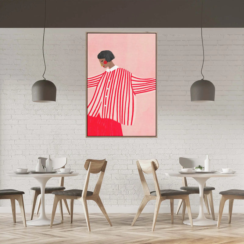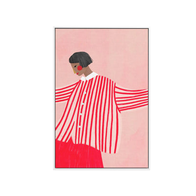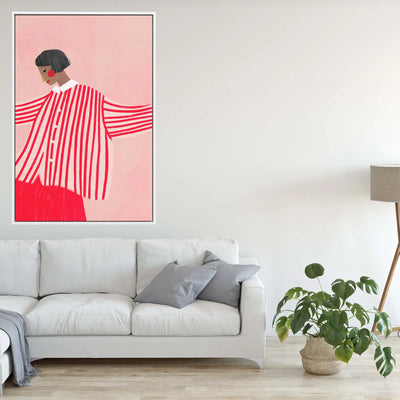This stunning contemporary artwork features a woman in a striped pink dress and is the perfect pop of colour for a modern space.
