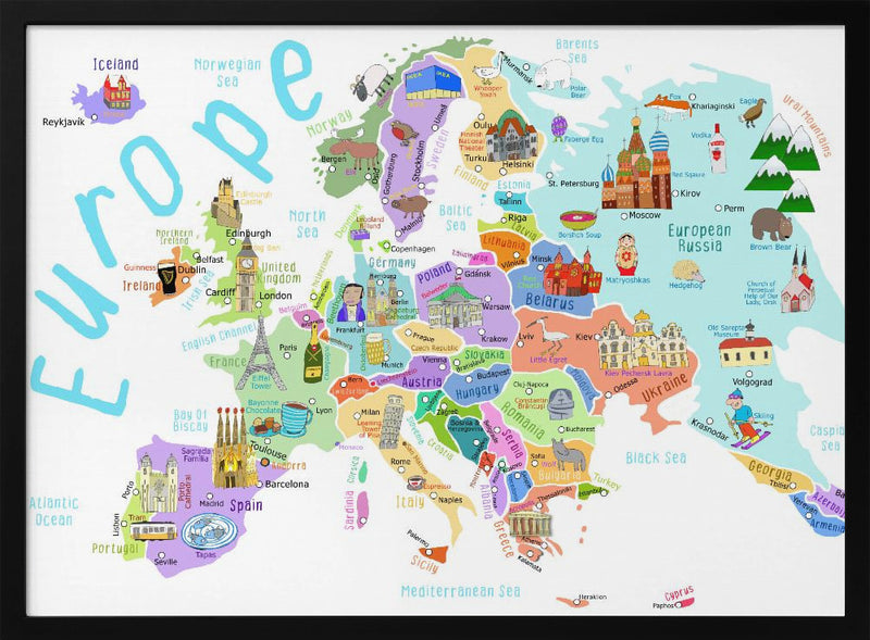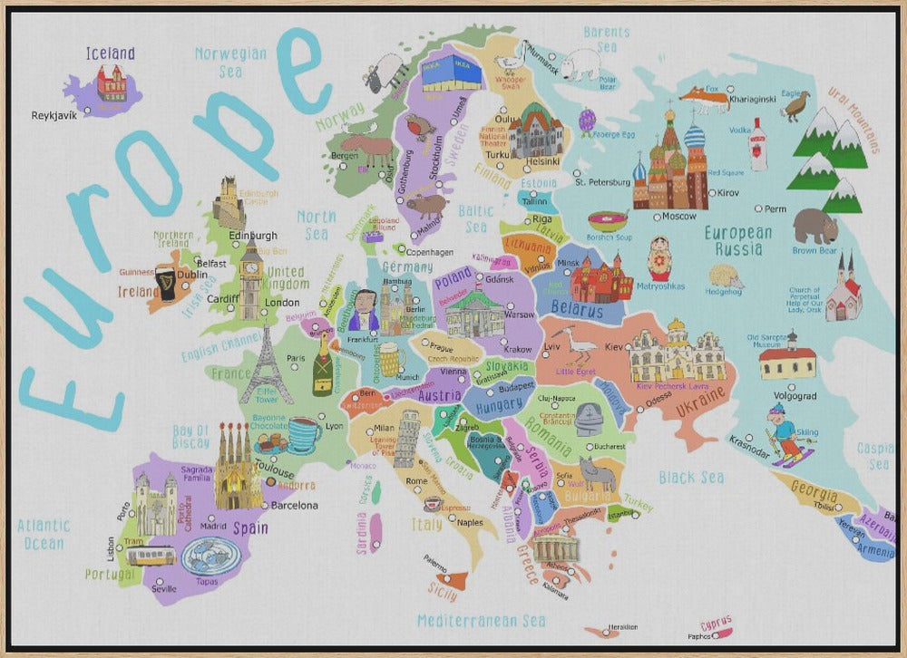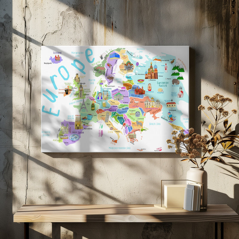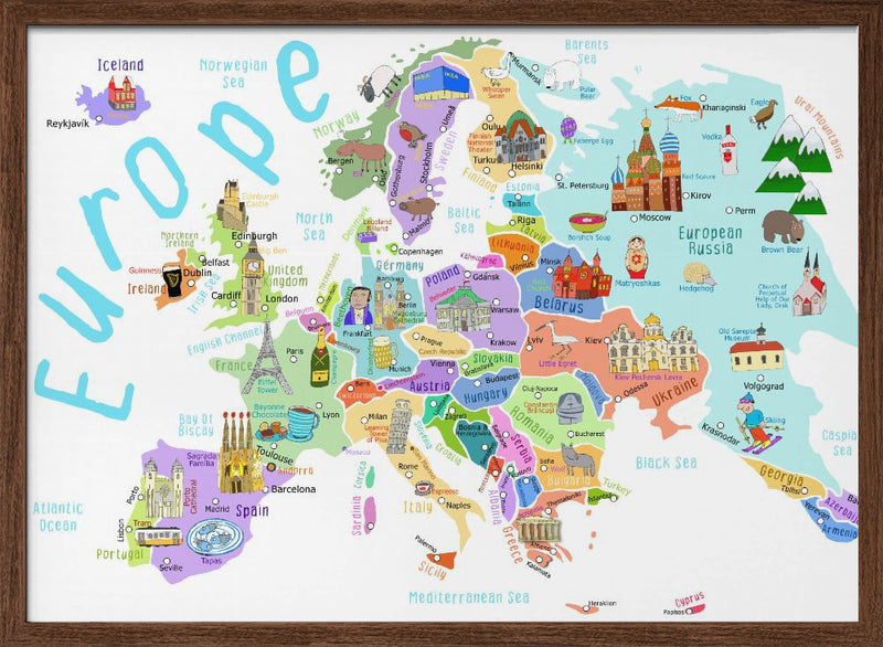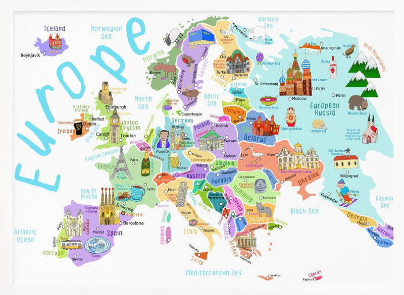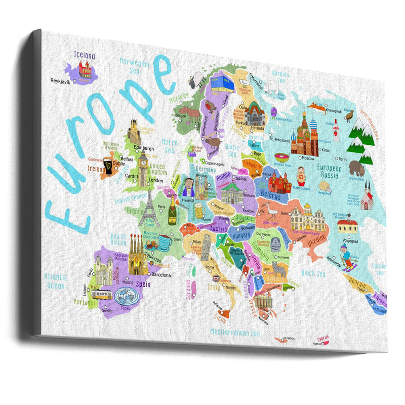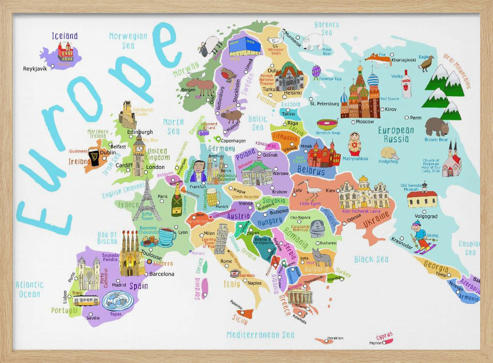 Explore our many print options for Illustrated Map of Europe by Map Illustrator Carla Daly by artist Carla Daly.