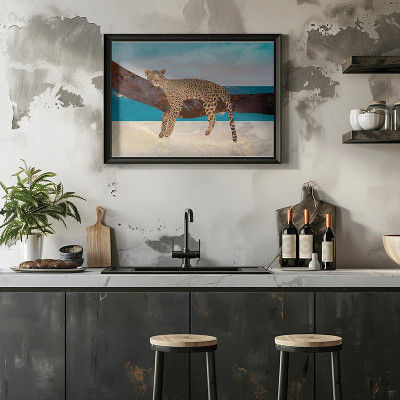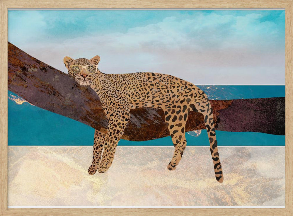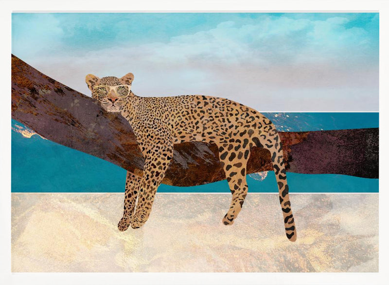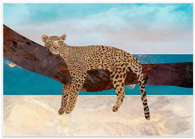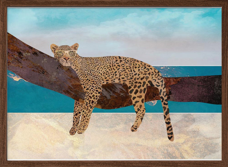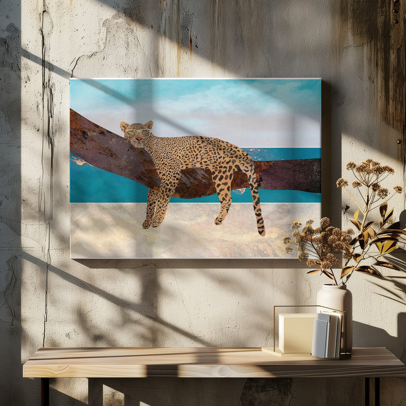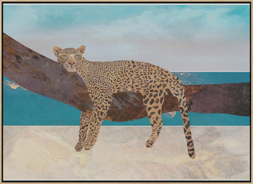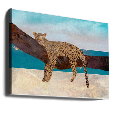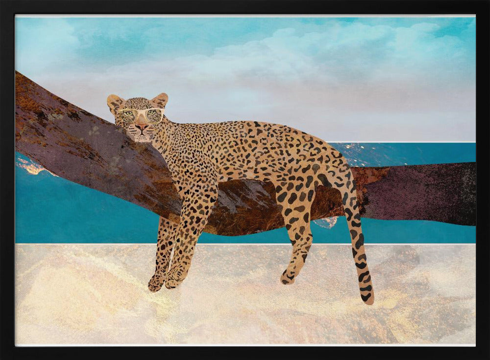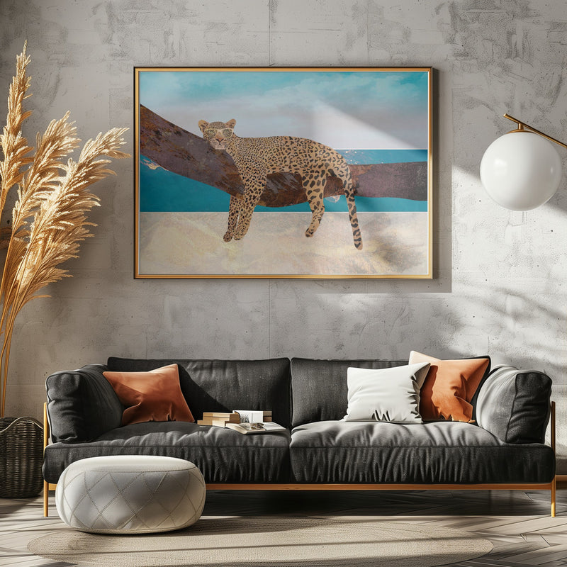 Explore our many print options for Leopard lying on beach landscape by artist Sarah Manovski.