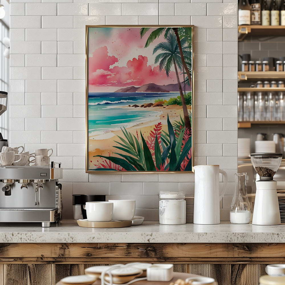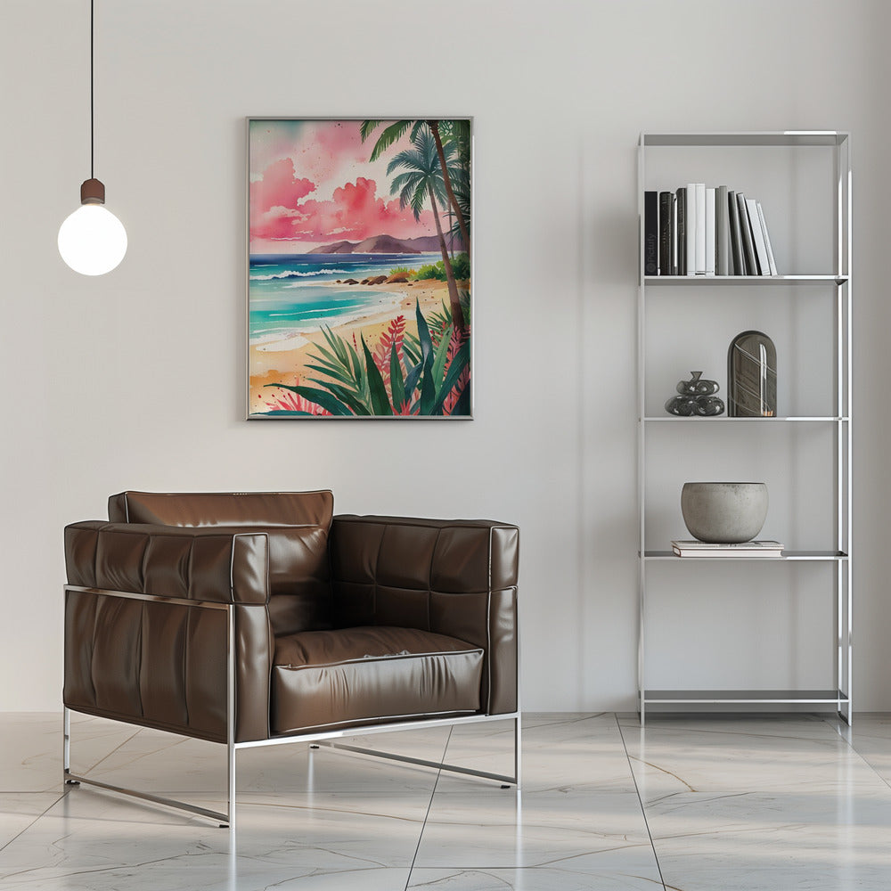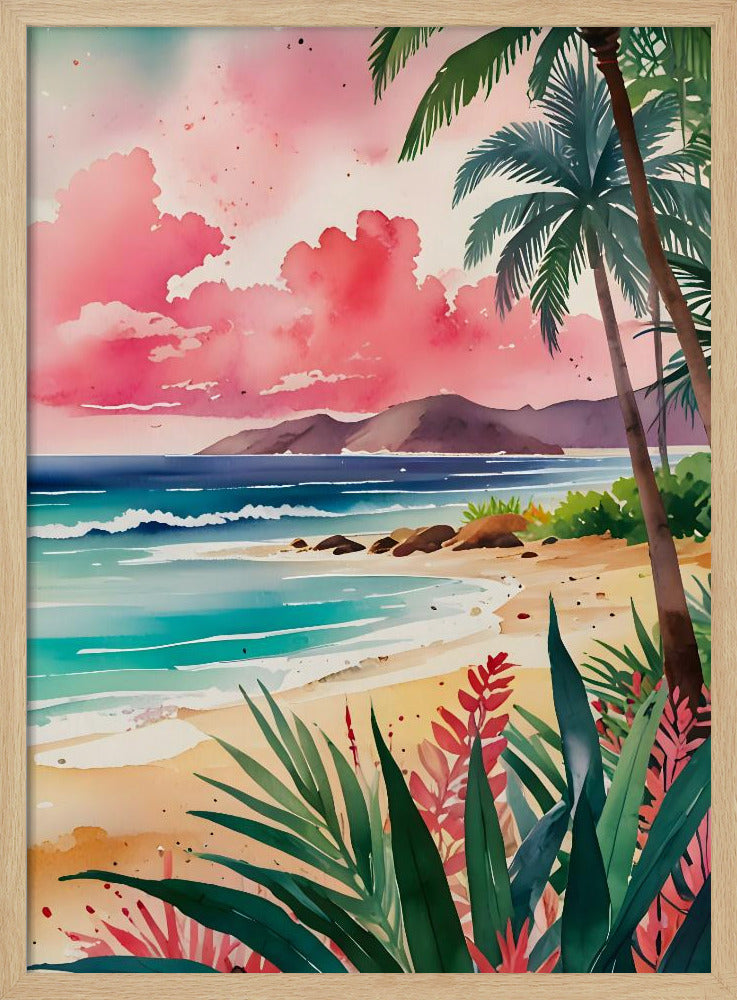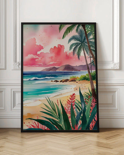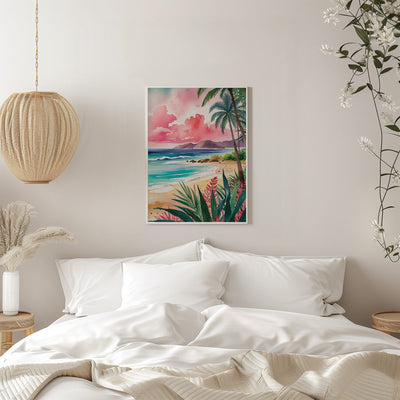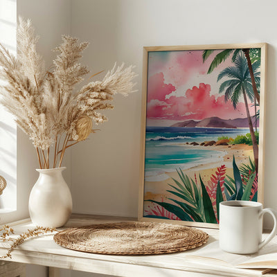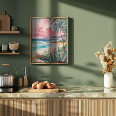 Explore our many print options for Vibrant Tropical Beach Artwork by artist Kintsugi99.