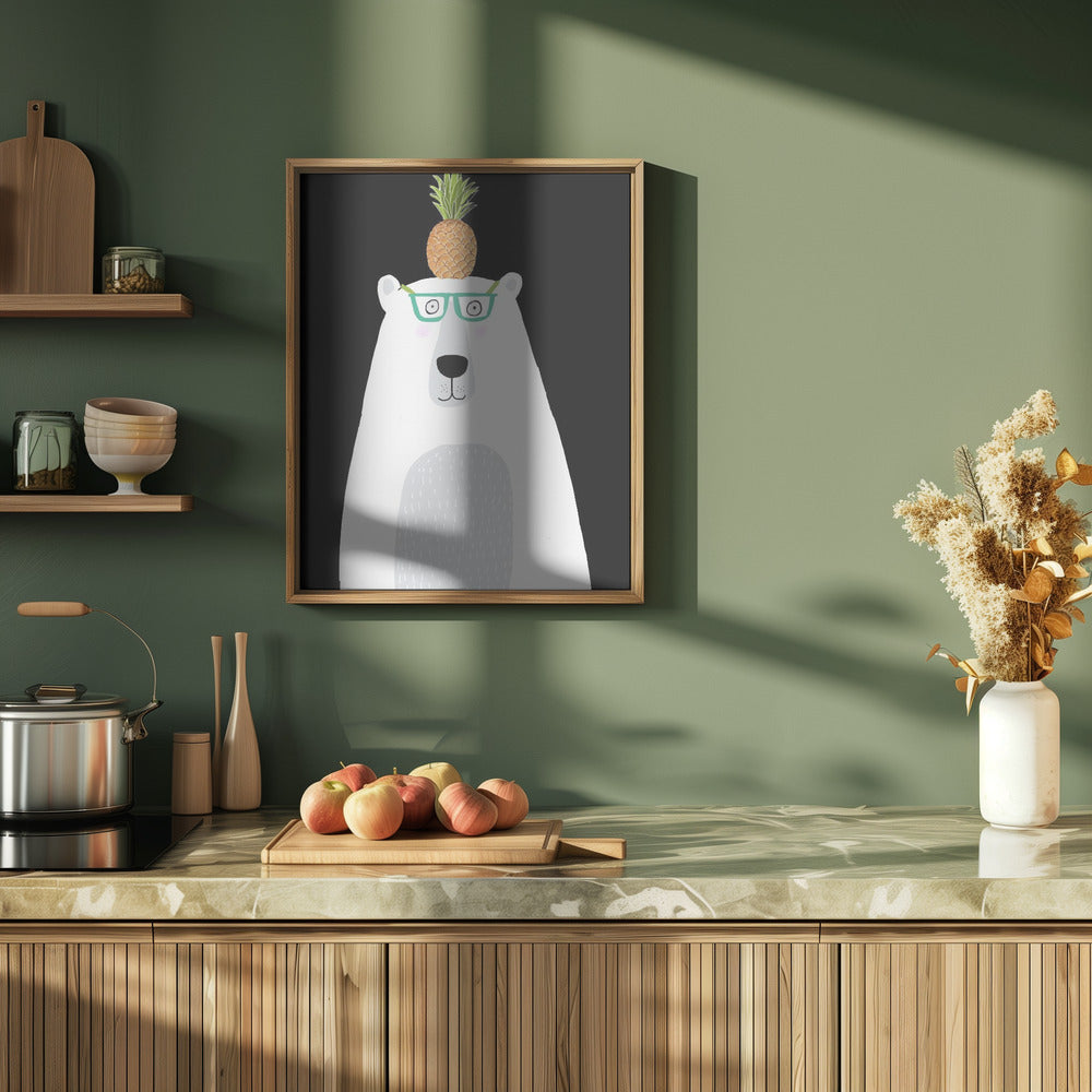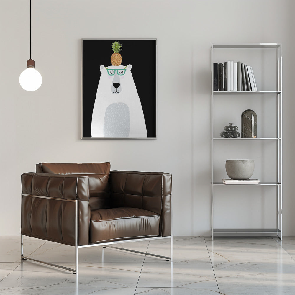 Explore our many print options for Funny White Polar Bear Wearing Glasses with Pineapple by artist Carla Daly.