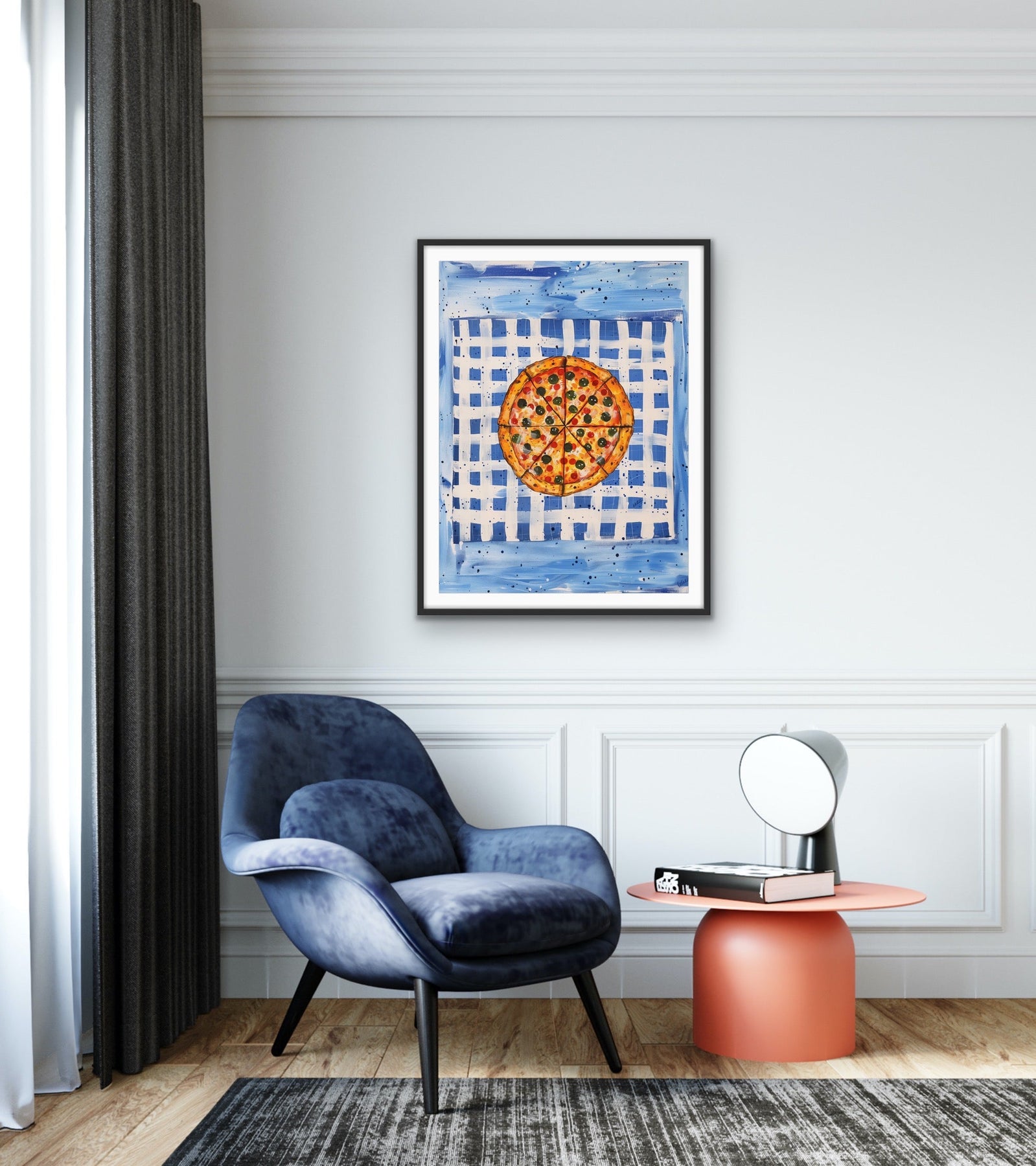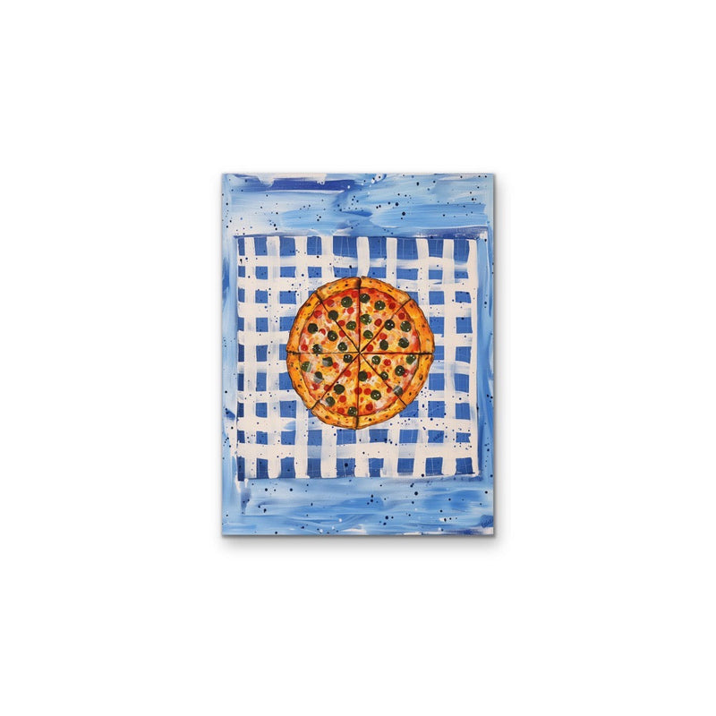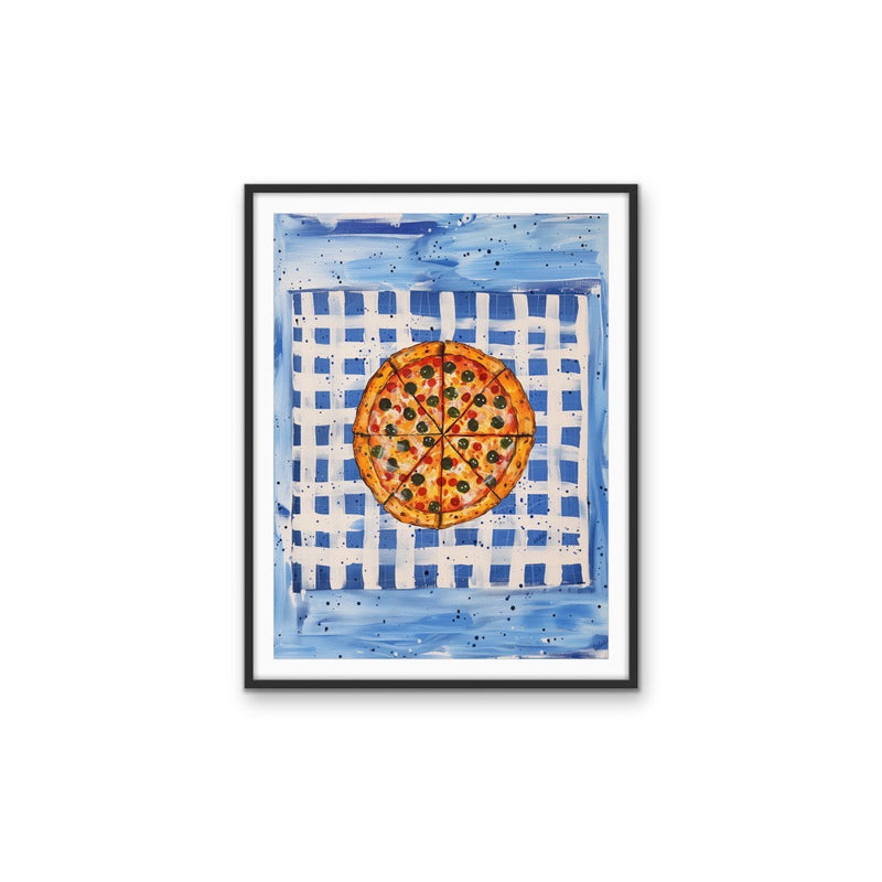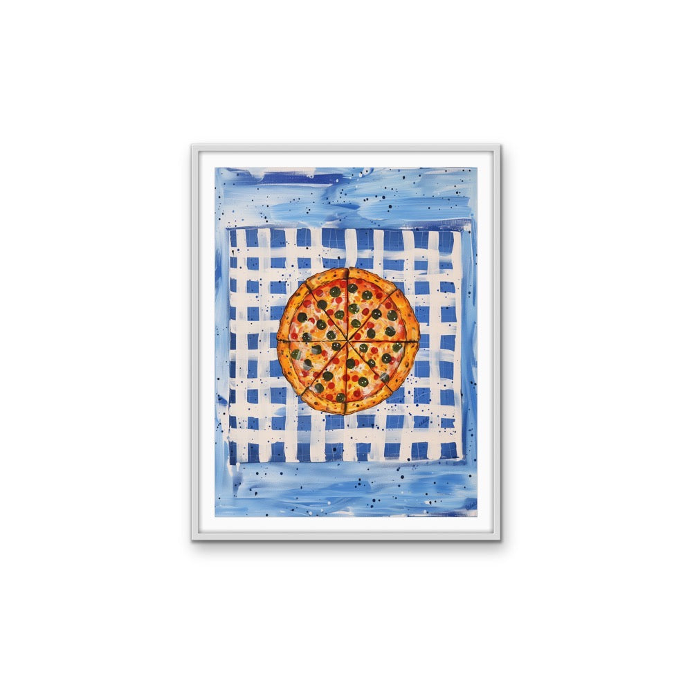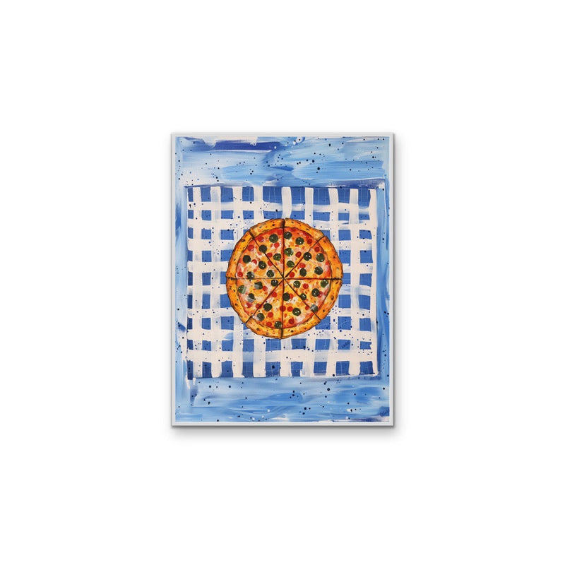The Pizza Blues - Surrealist Pizza with Blue Background, Stretched Canvas or Wall Art Print