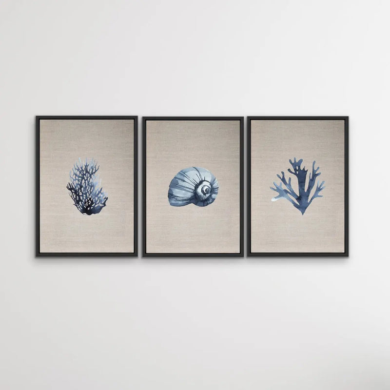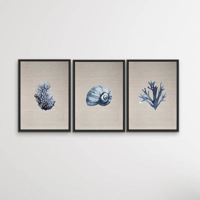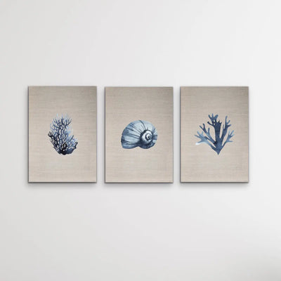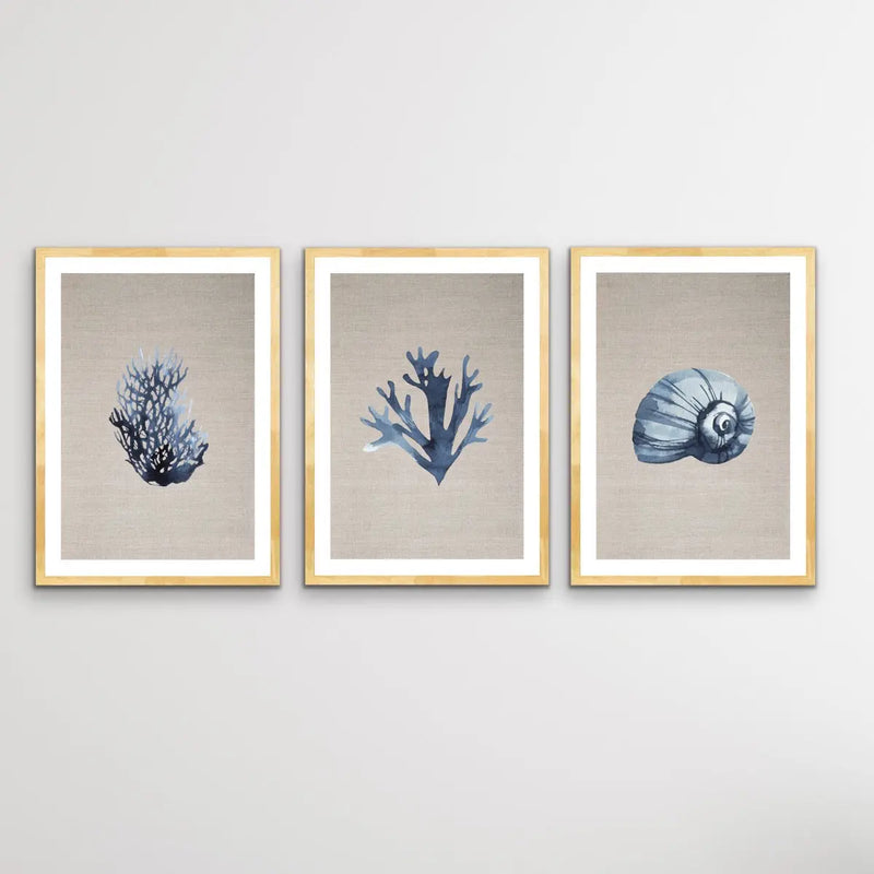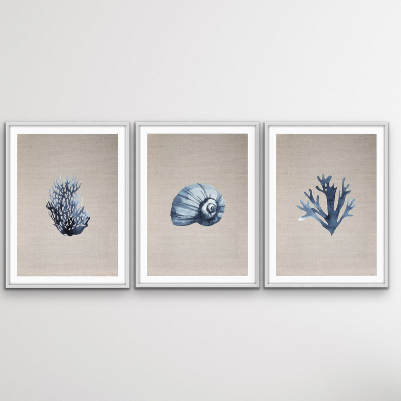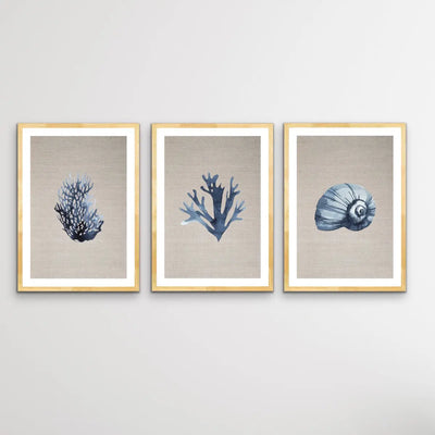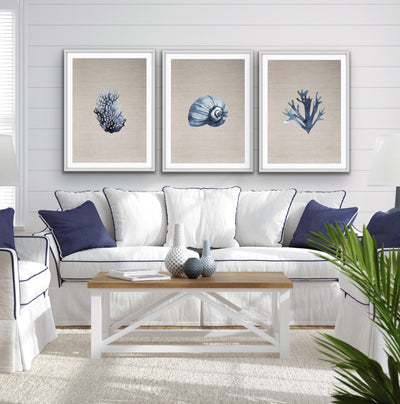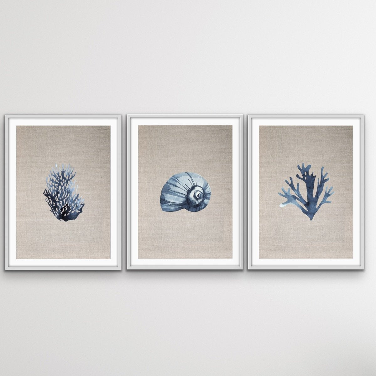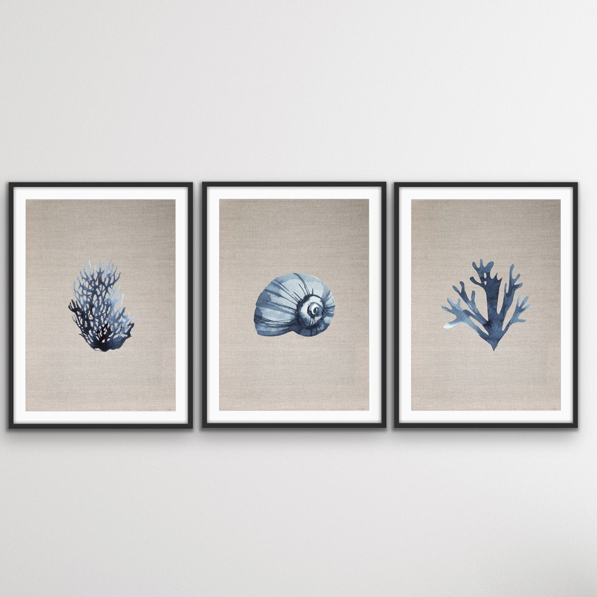 This set of three cute blue coral prints come as prints, printed on quality paper and in standard sizes so you can easily pick up frames to match your decor.