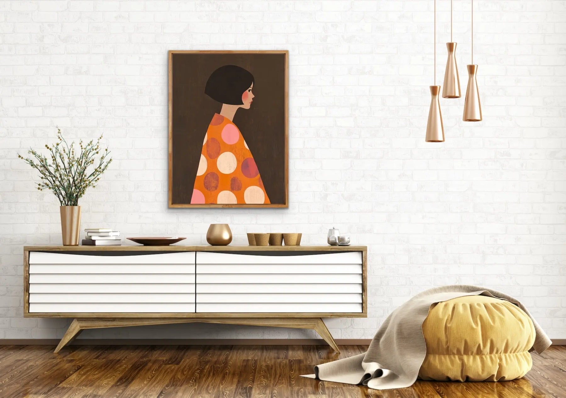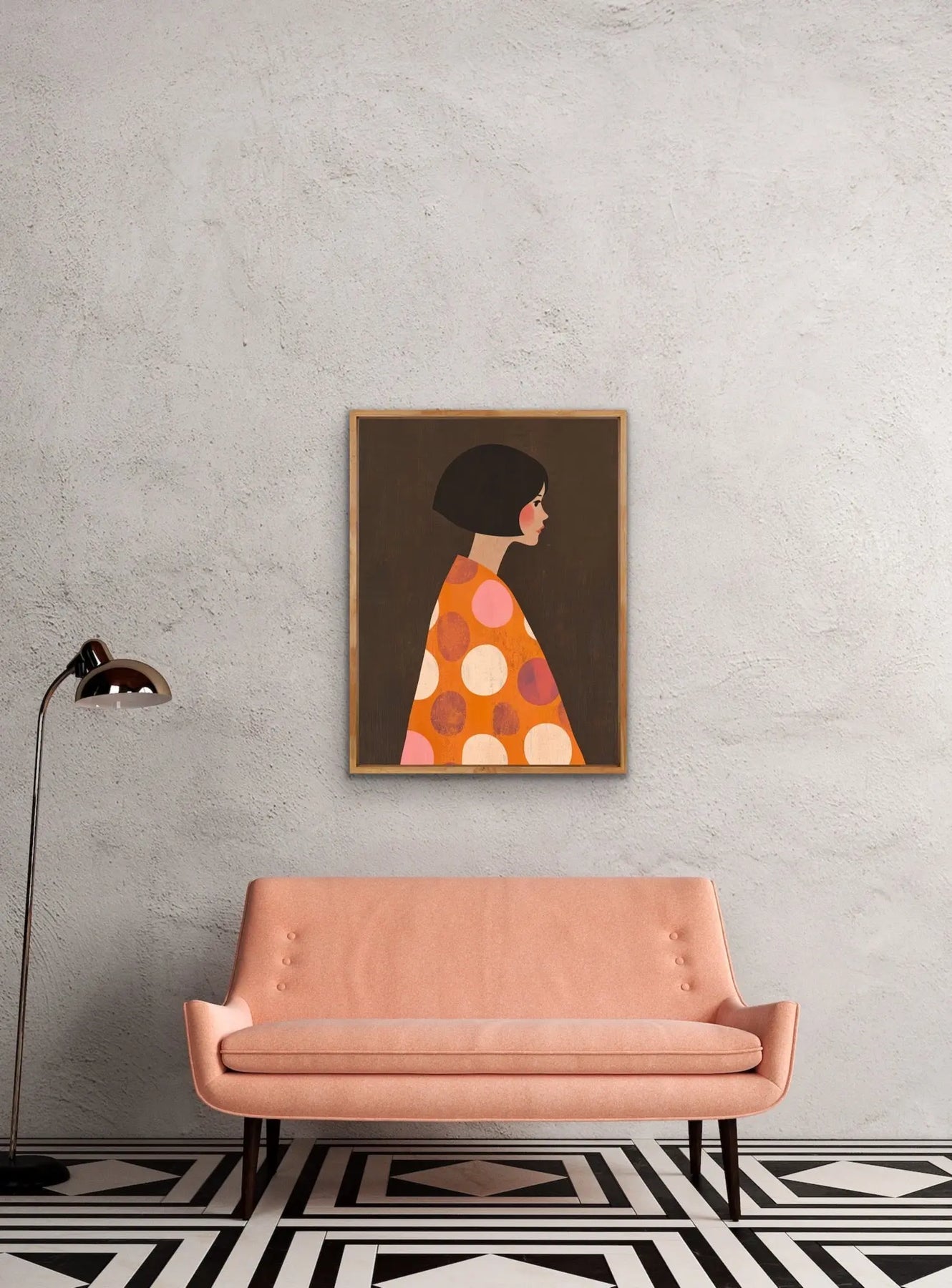 'Orange Spots' is a modern portrait with a stunning blend of colours, guaranteed to add a pop of colour to any room.