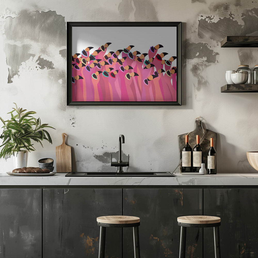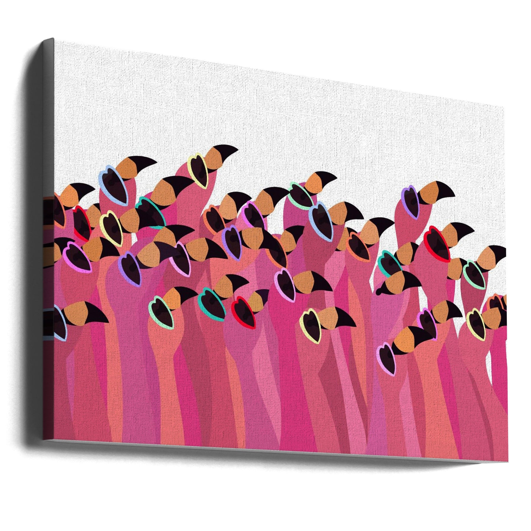 Explore our many print options for Flock flamingo white by artist Sarah Manovski.