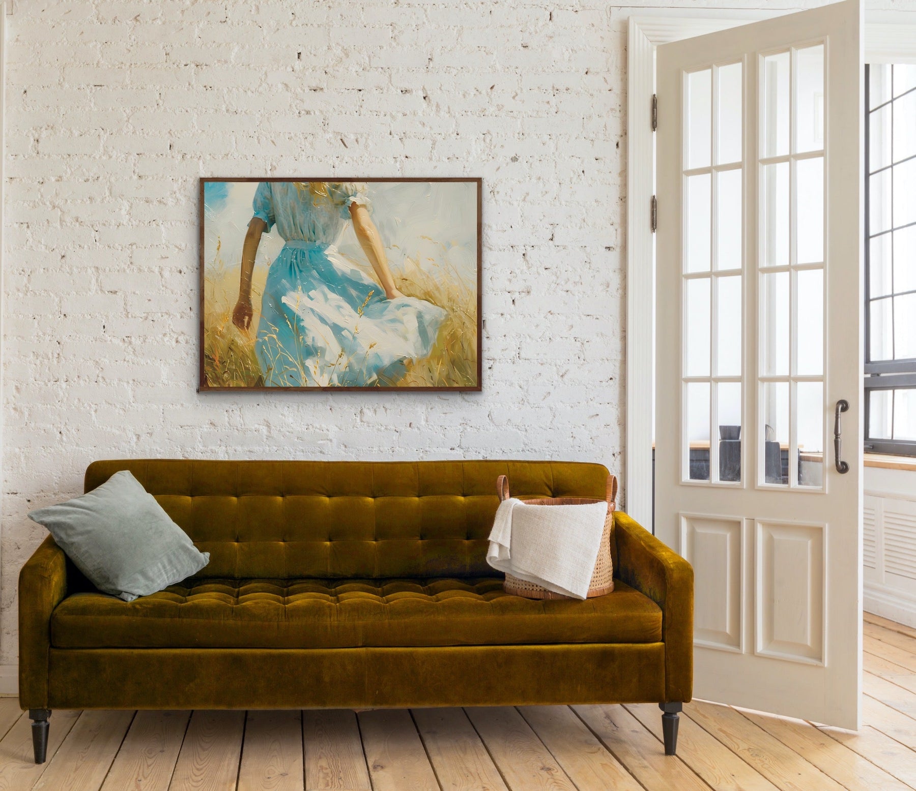 If you're looking for a beautiful, unique vintage print you've come to the right place! This gorgeous artwork has a splash of blue and a countryside-feel.